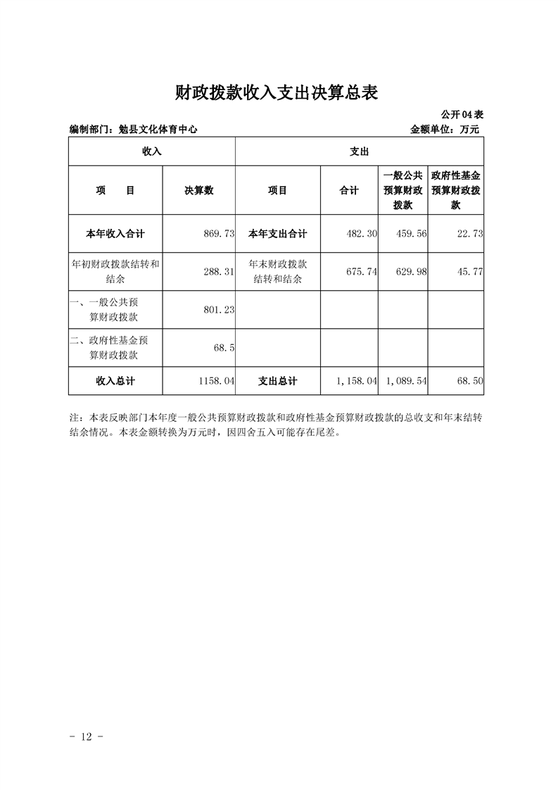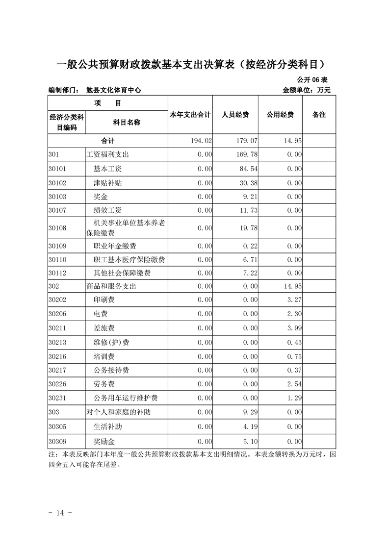 勉县文化体育中心2019年勉县部门决算公开