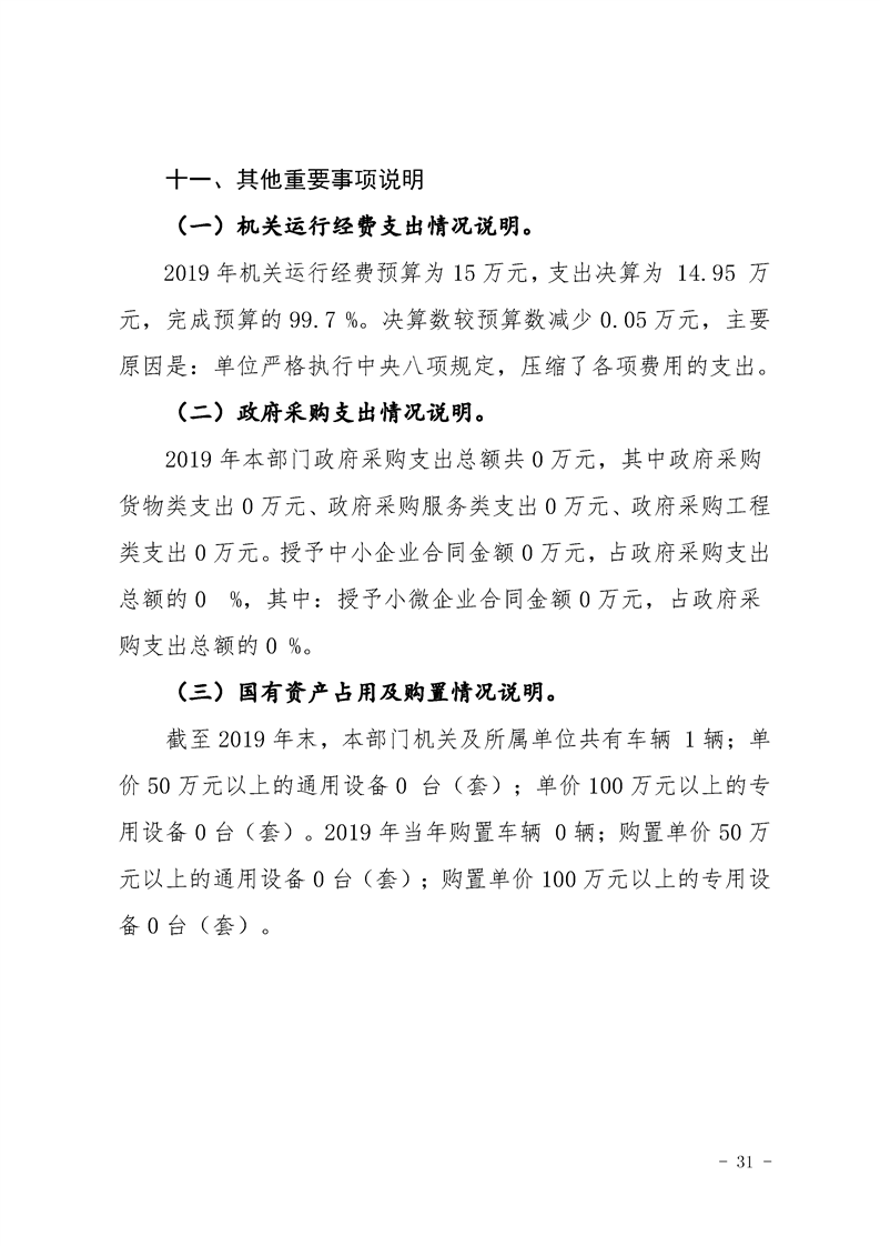 2019年县级部门决算公开目录