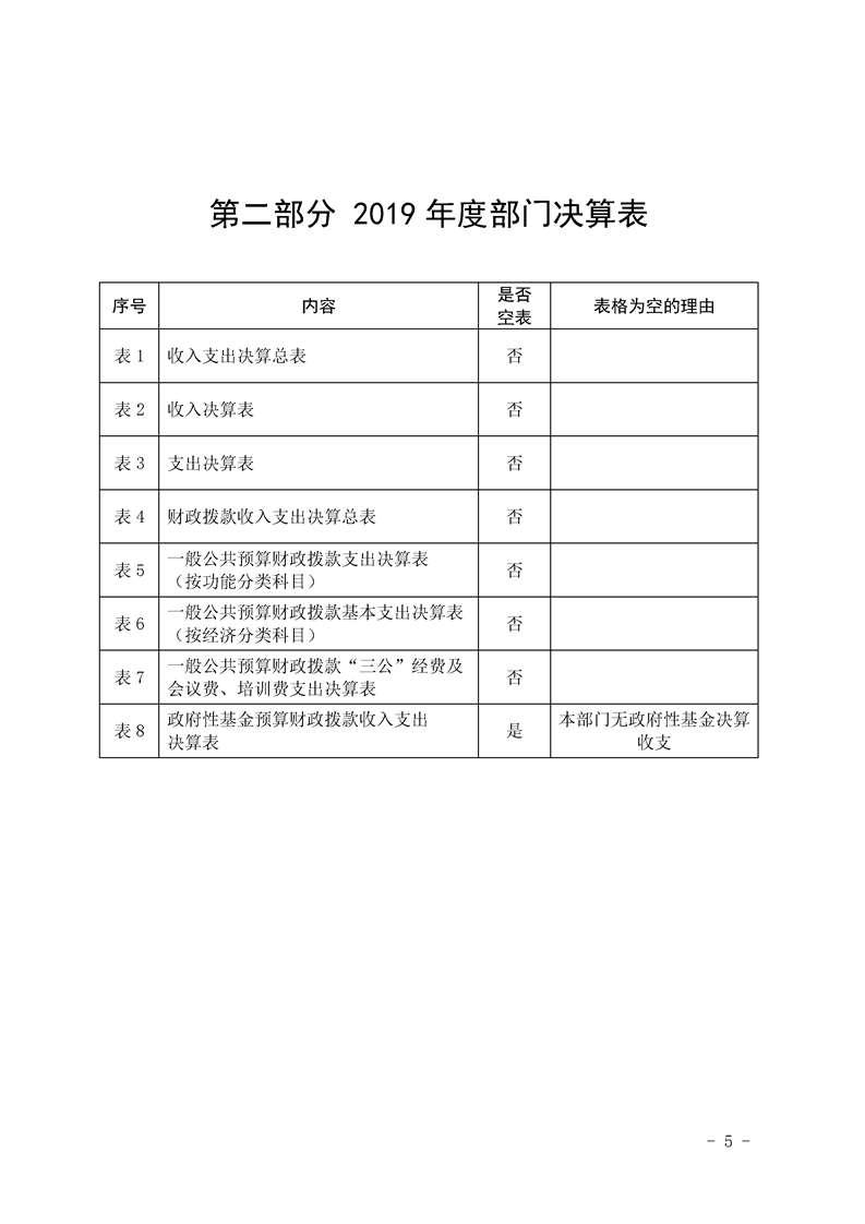 2019年县级部门决算公开目录