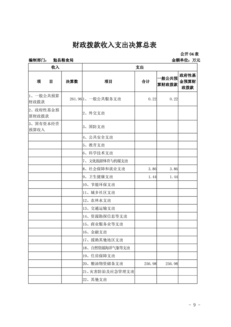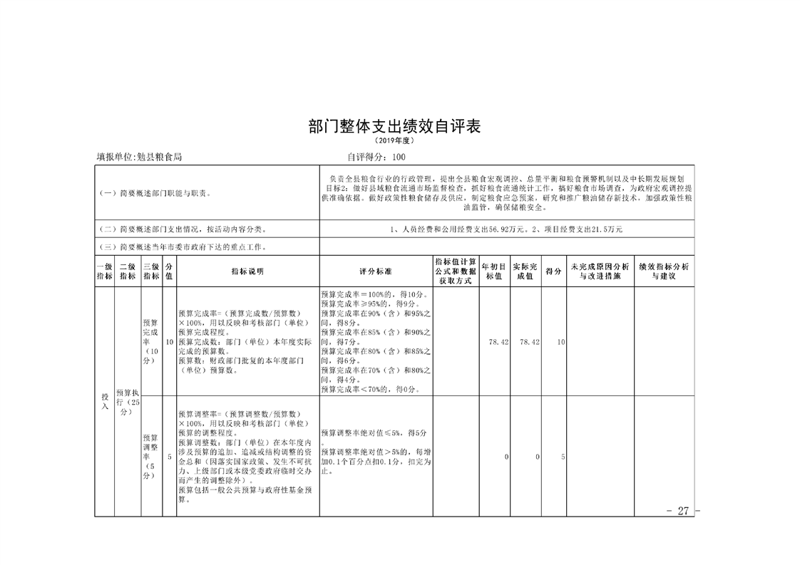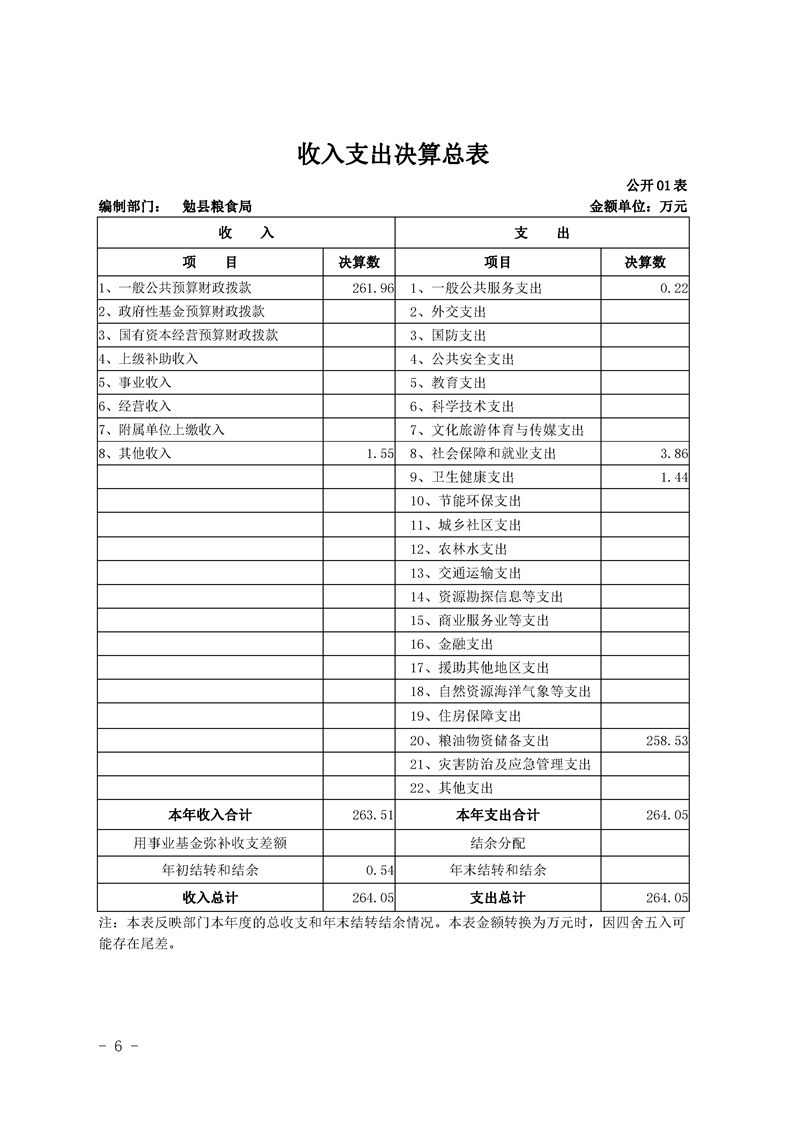 勉县粮食局2019年部门决算公开