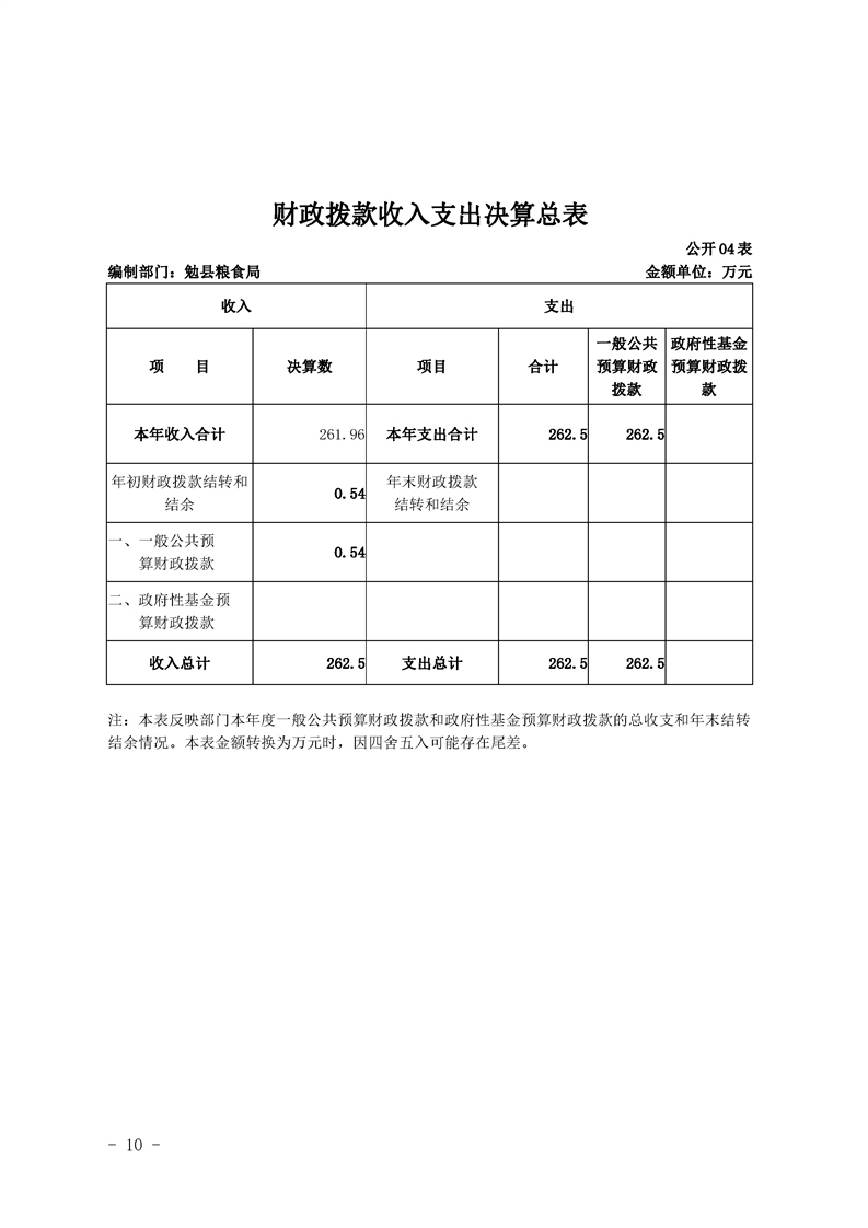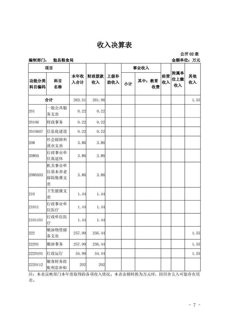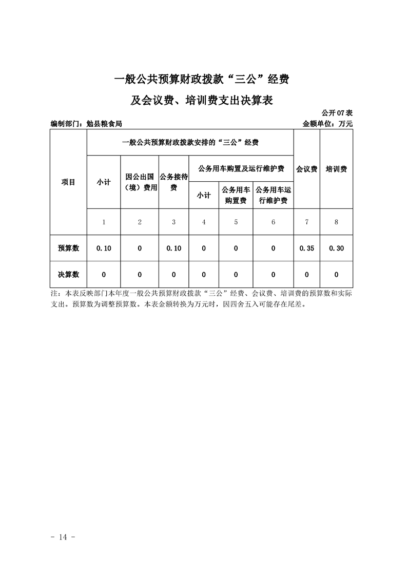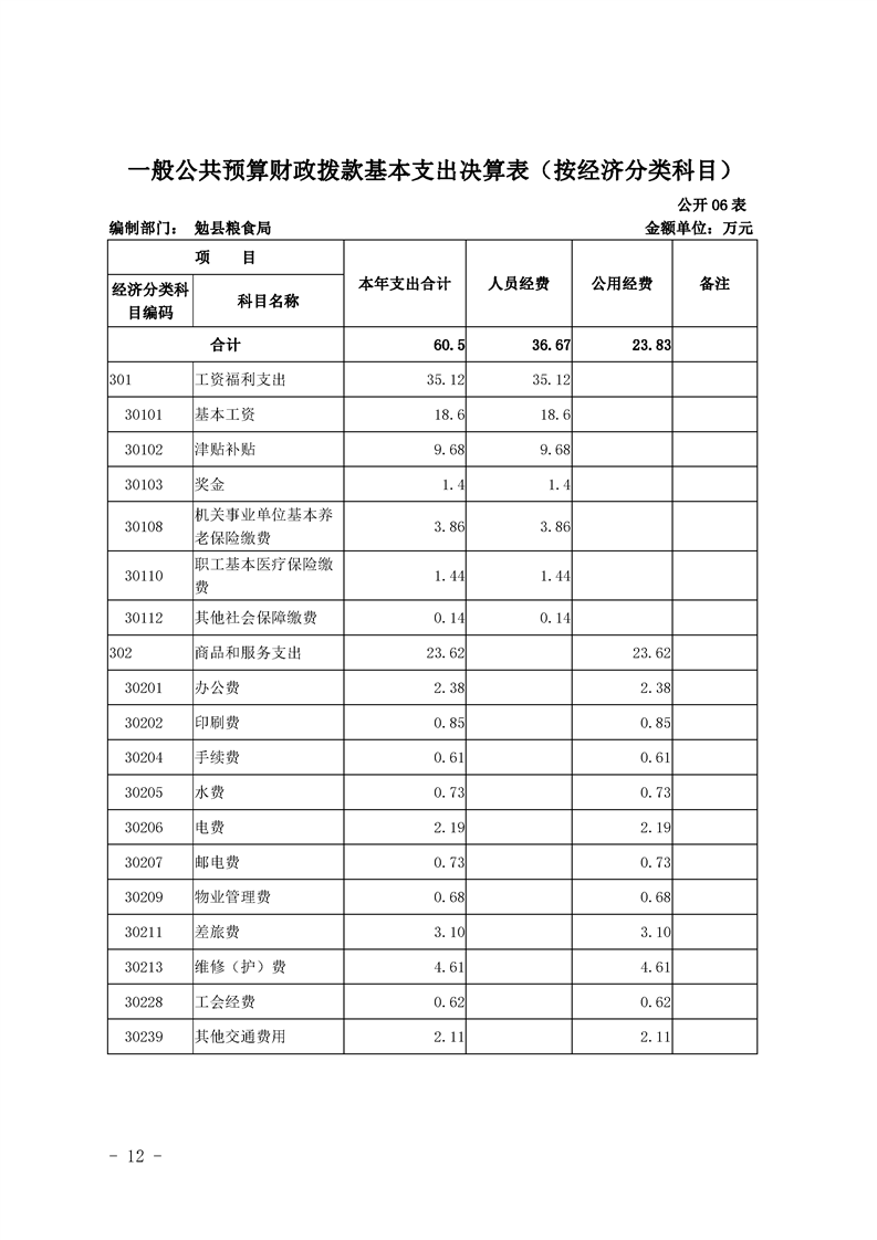 勉县粮食局2019年部门决算公开