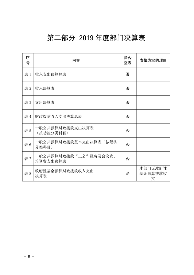 2019年县级部门决算公开目录