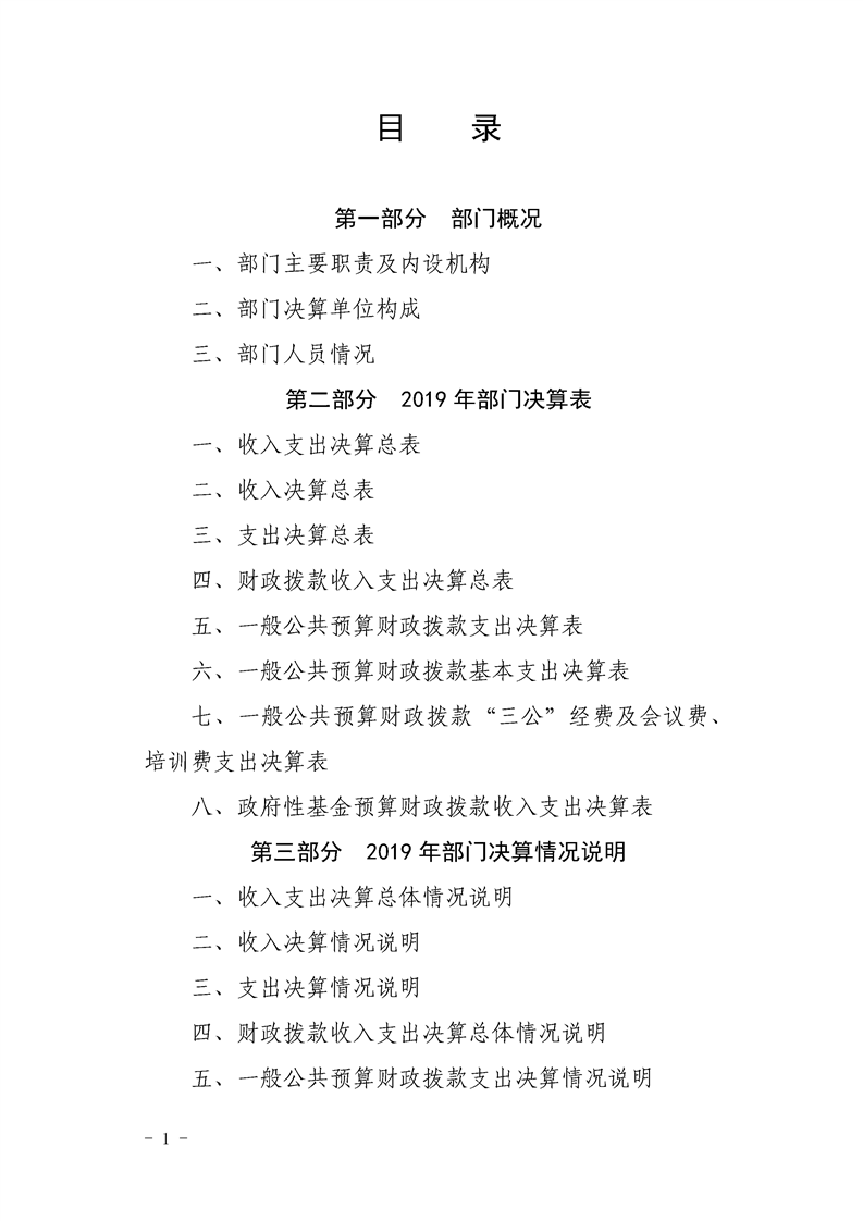 2019年县级部门决算公开目录