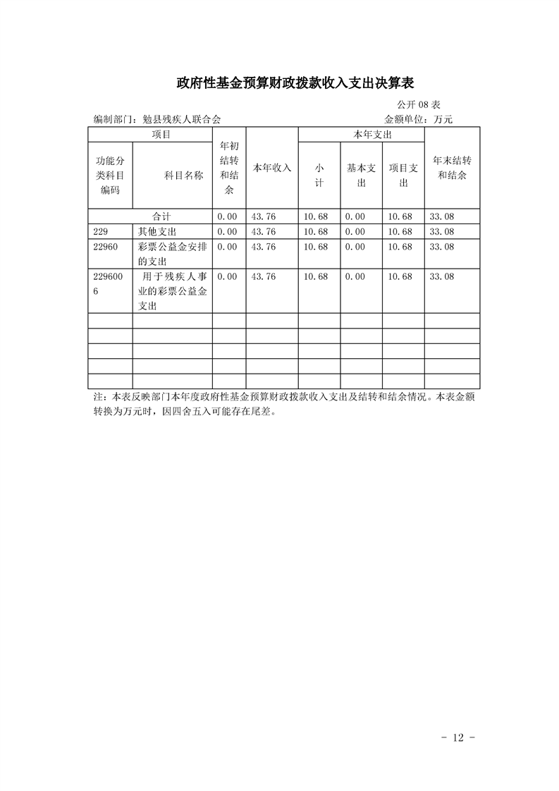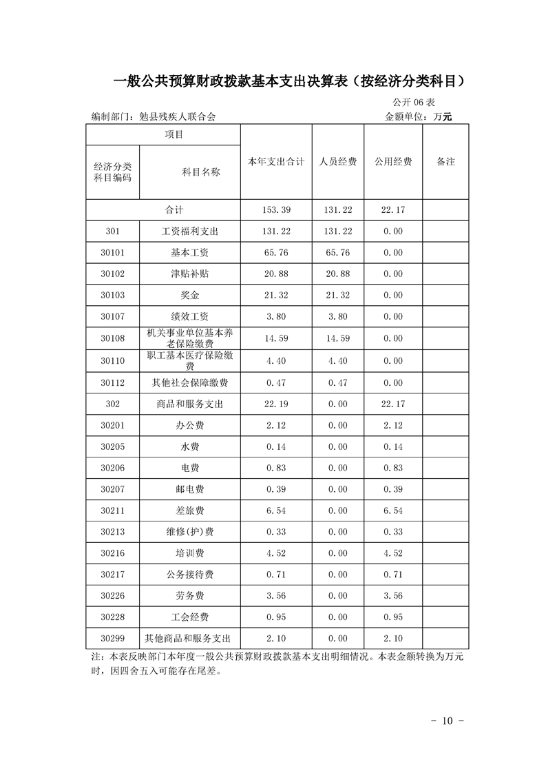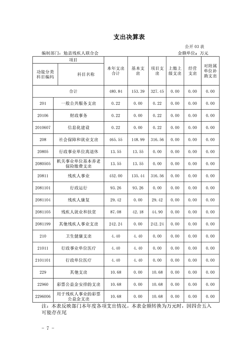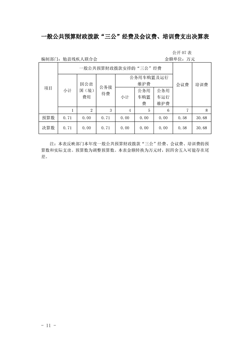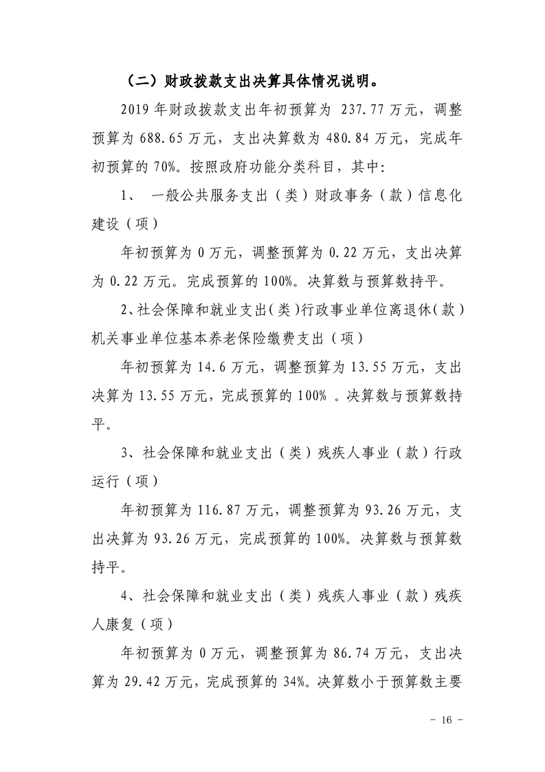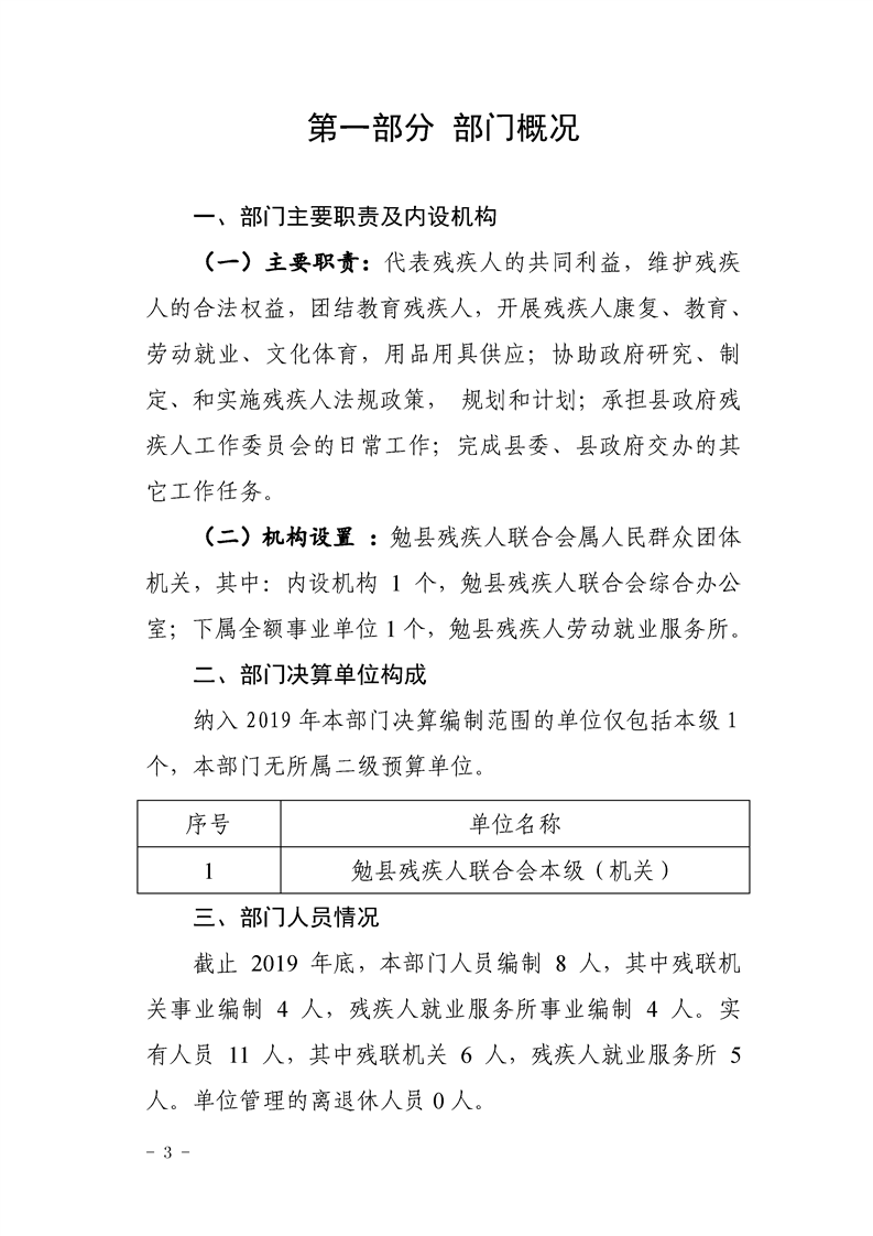 勉县残疾人联合会2019年部门决算公开