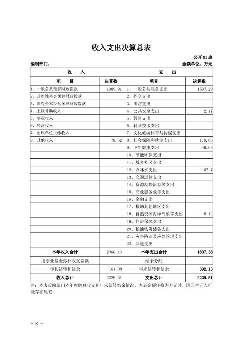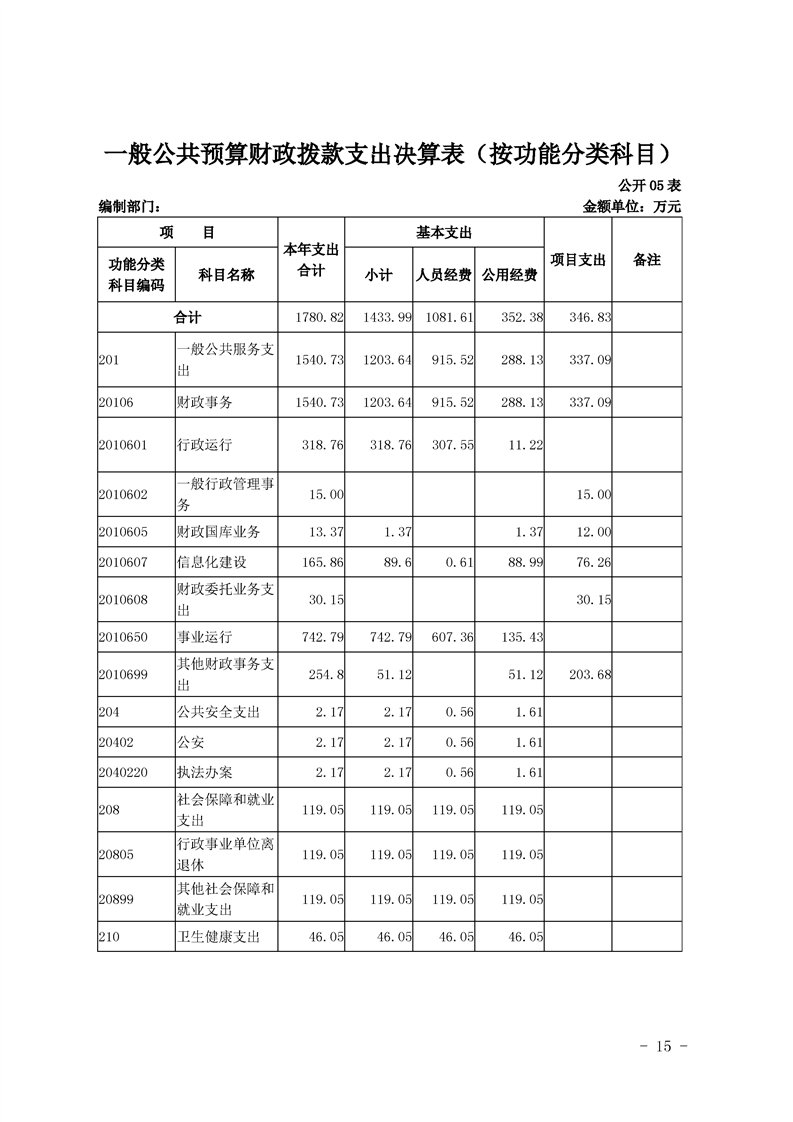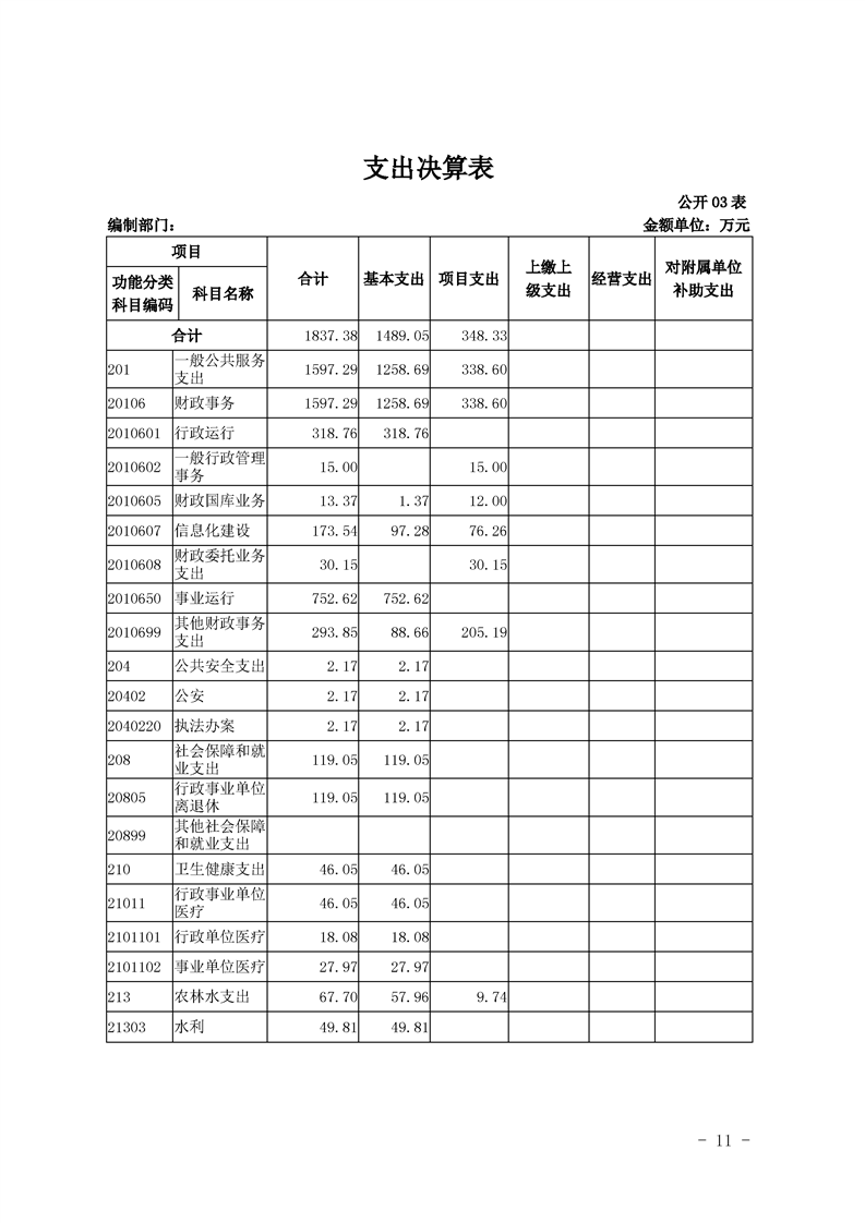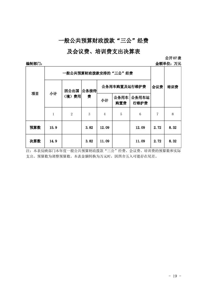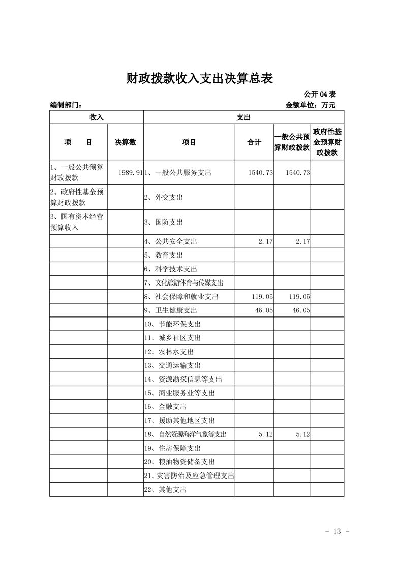2019年县级部门决算公开目录