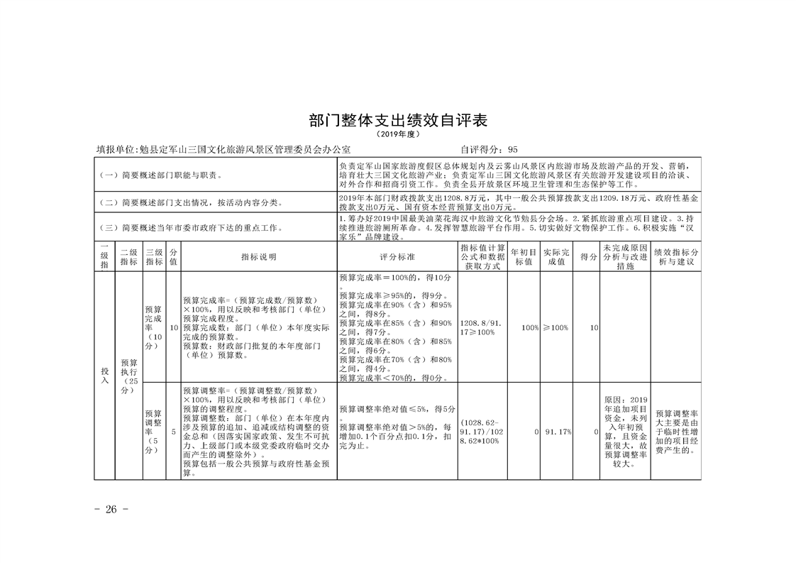 勉县定军山三国文化旅游风景区管理委员会办公室2019年部门决算