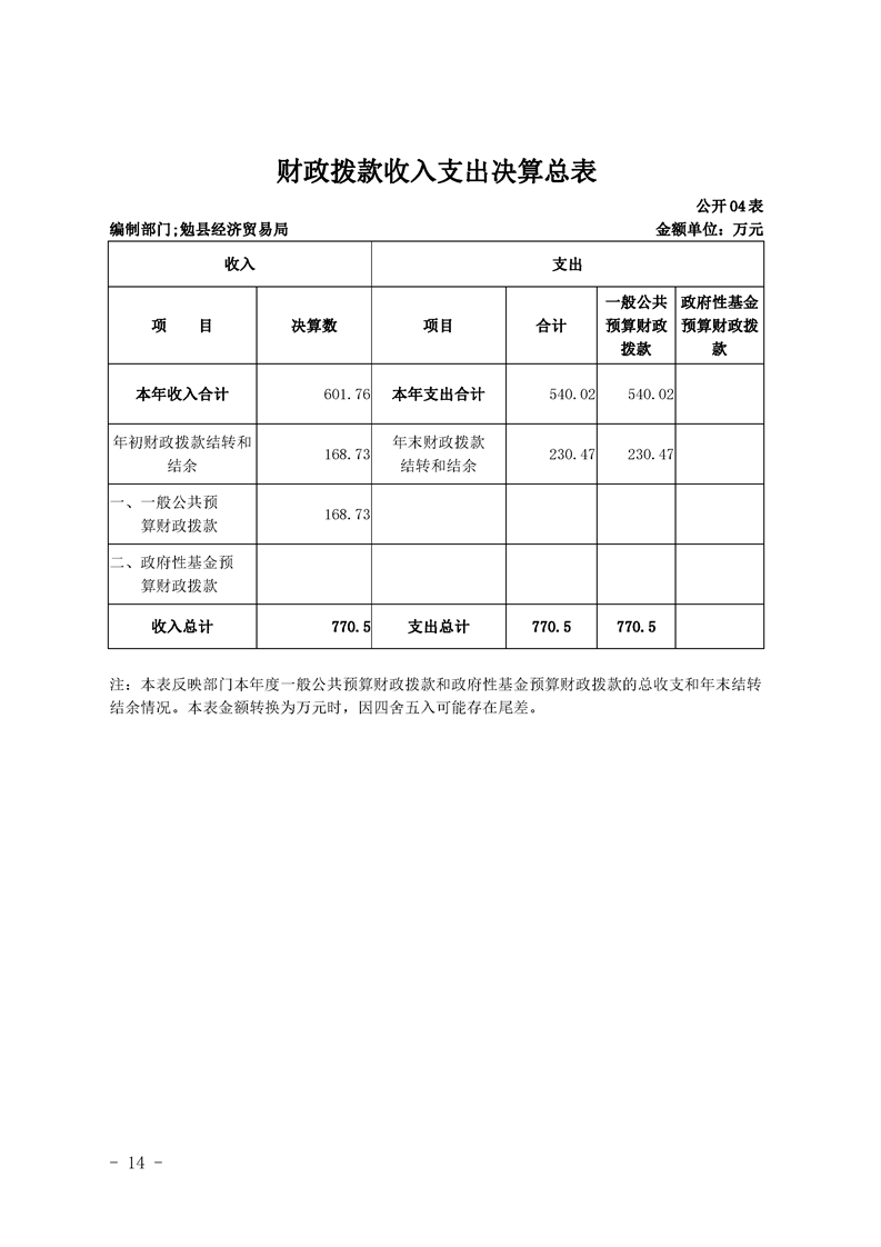勉县经济贸易局2019年部门决算公开