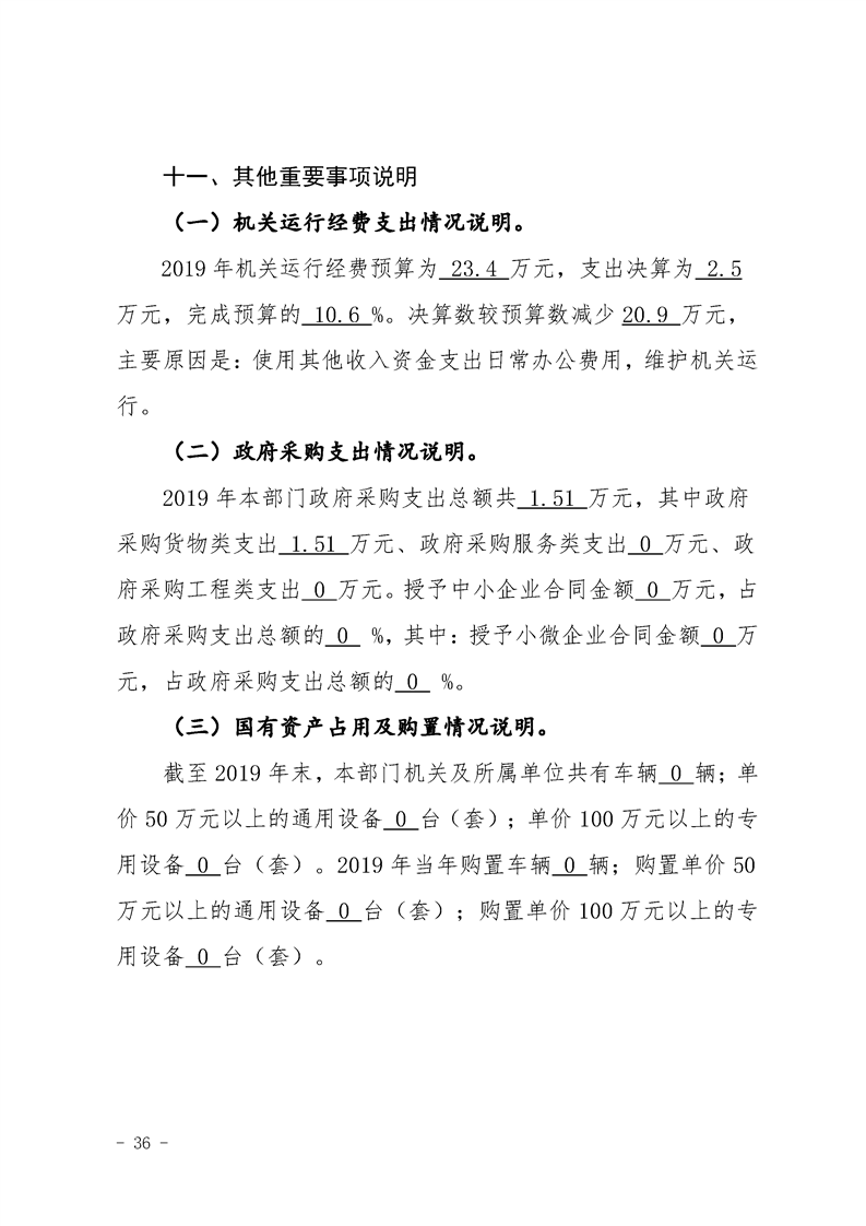 2019年县级部门决算公开目录