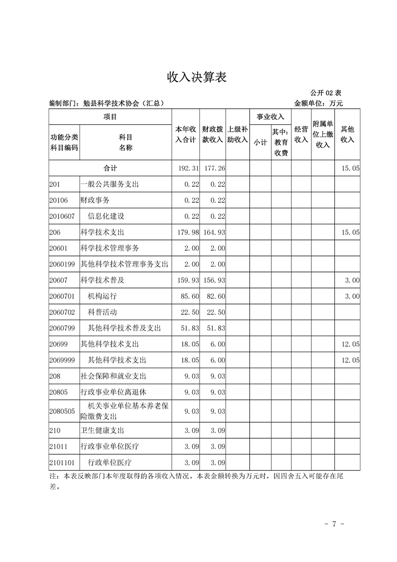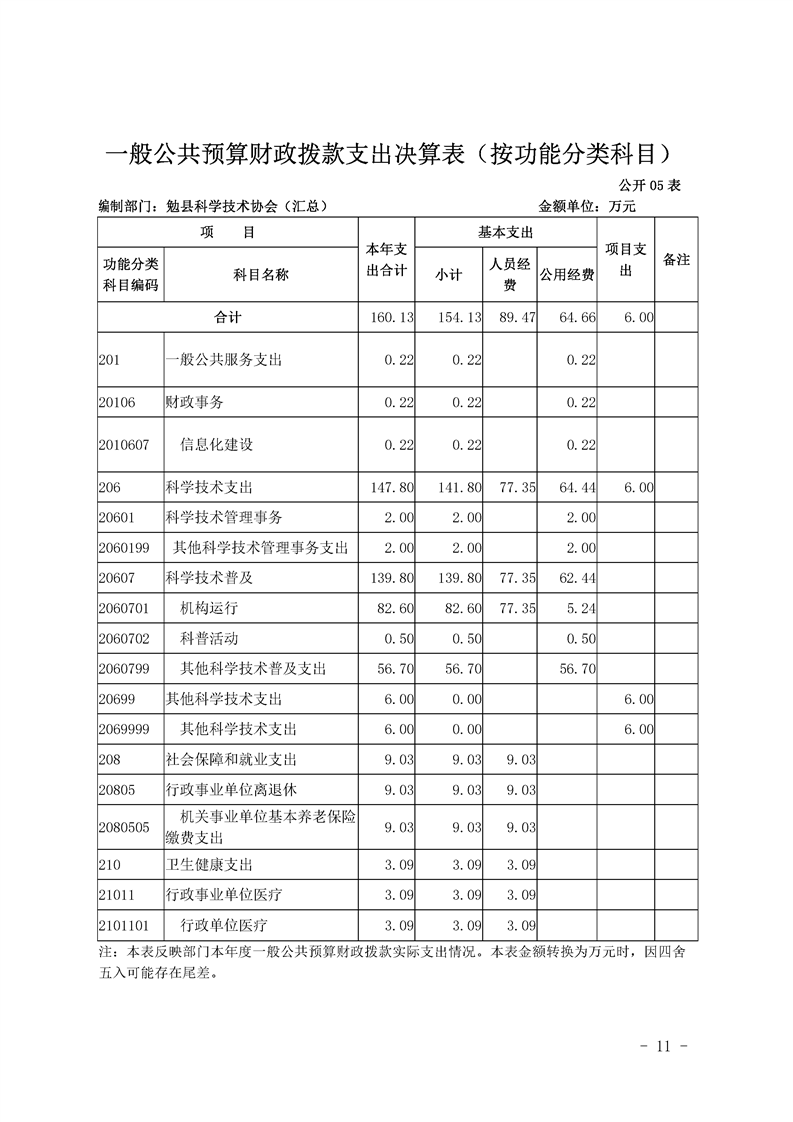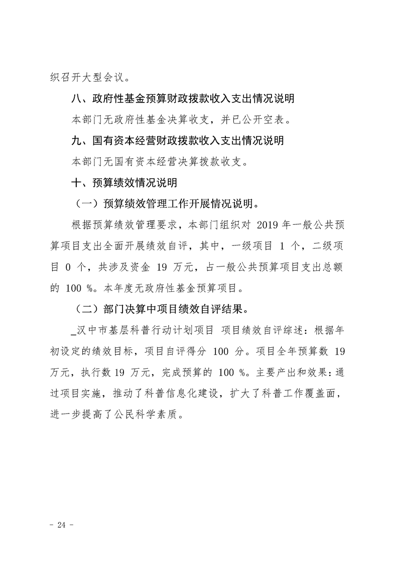 勉县科学技术协会2019年部门决算