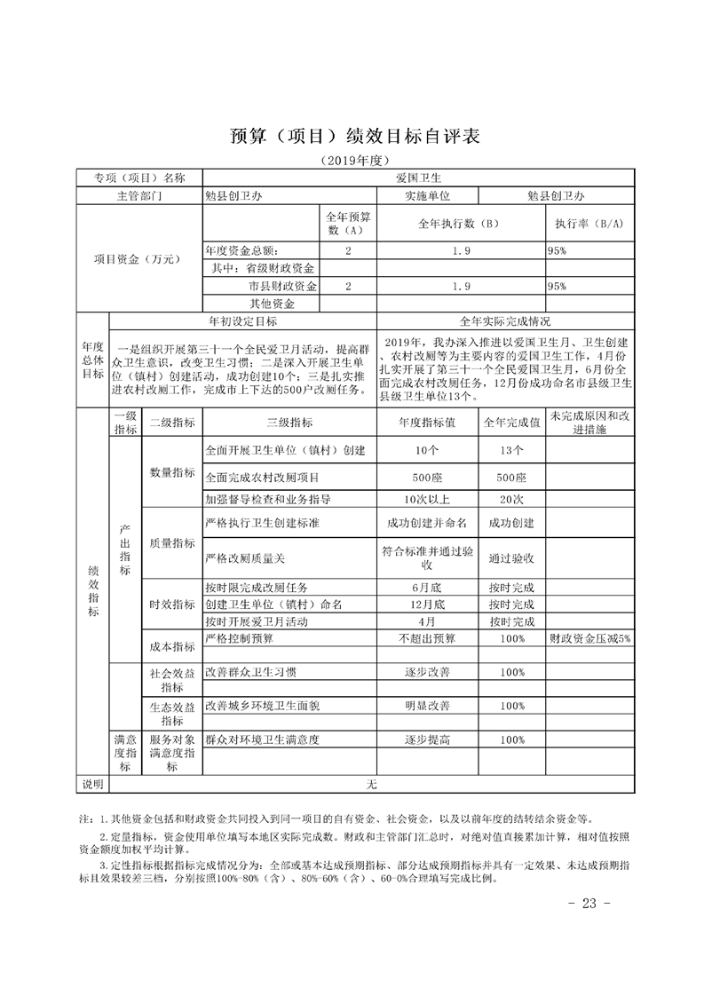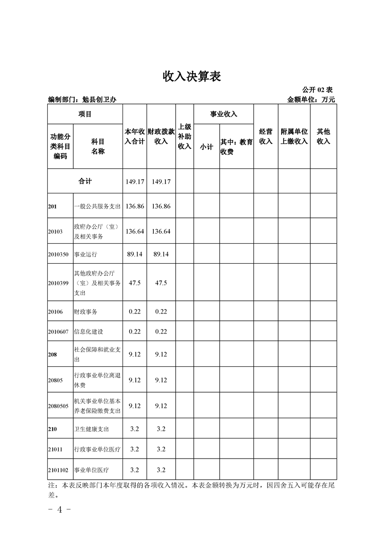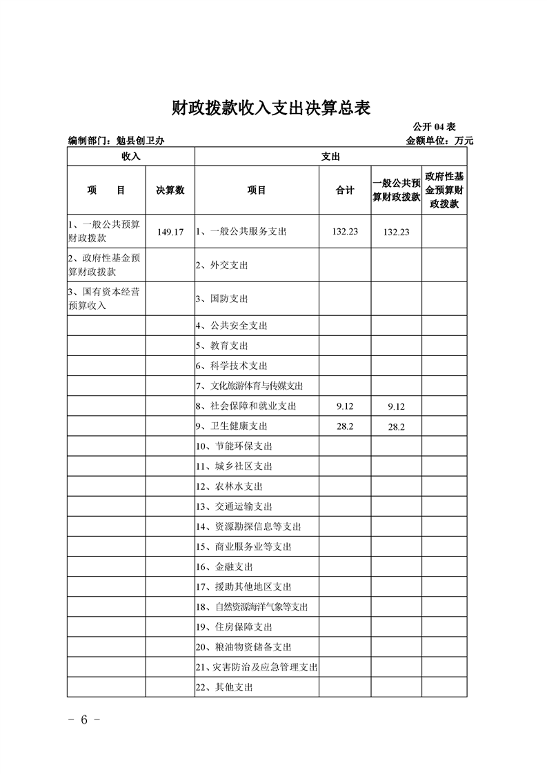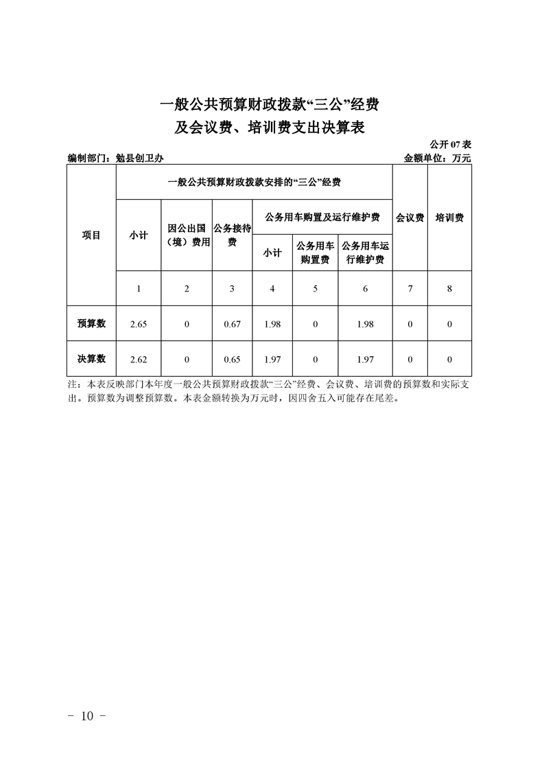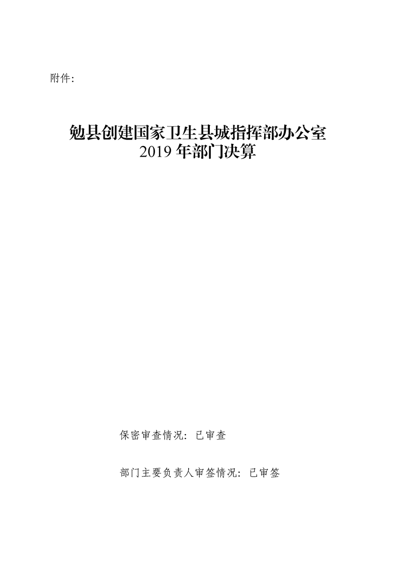 勉县创建国家卫生县城指挥部办公室2019年部门决算公开