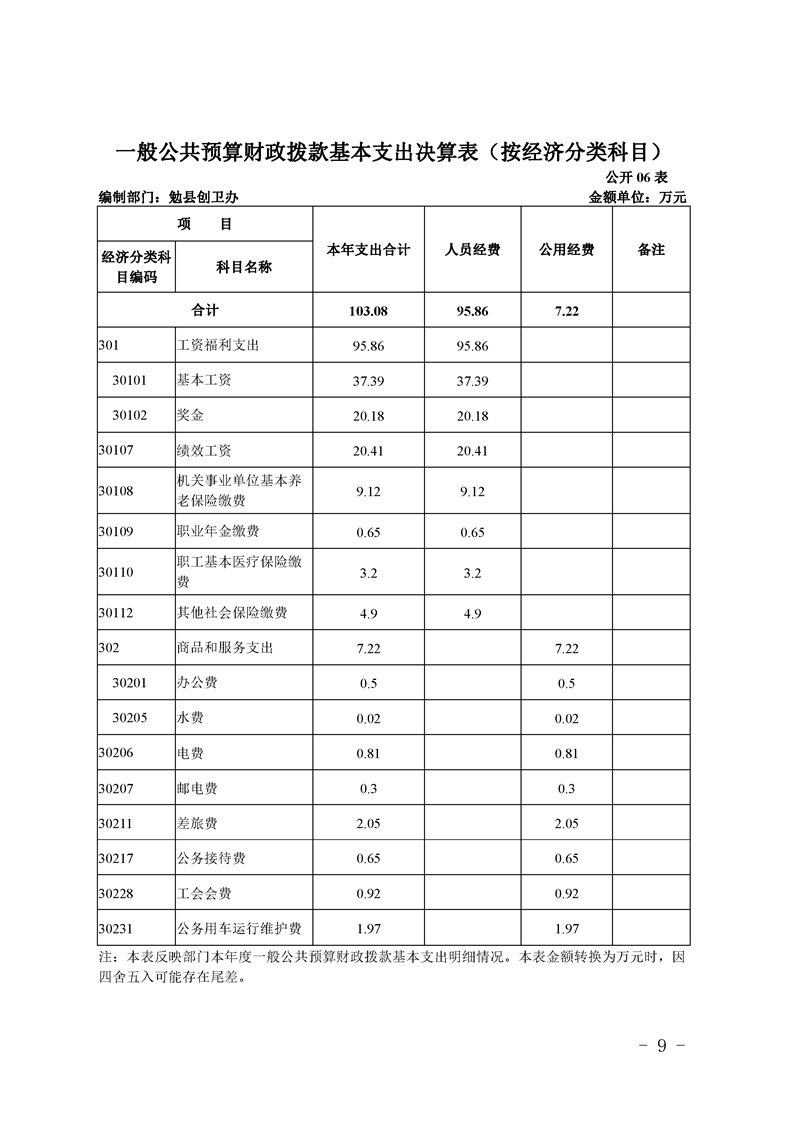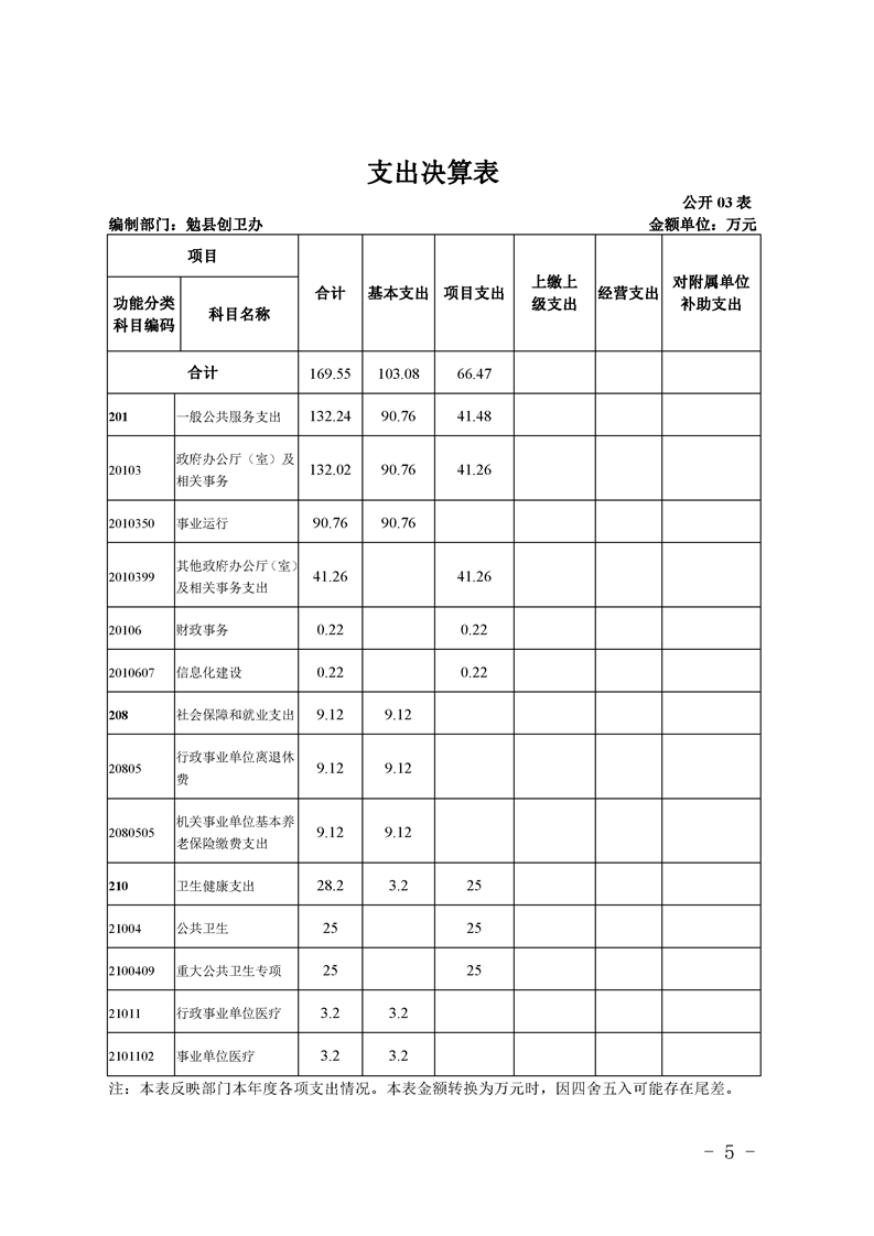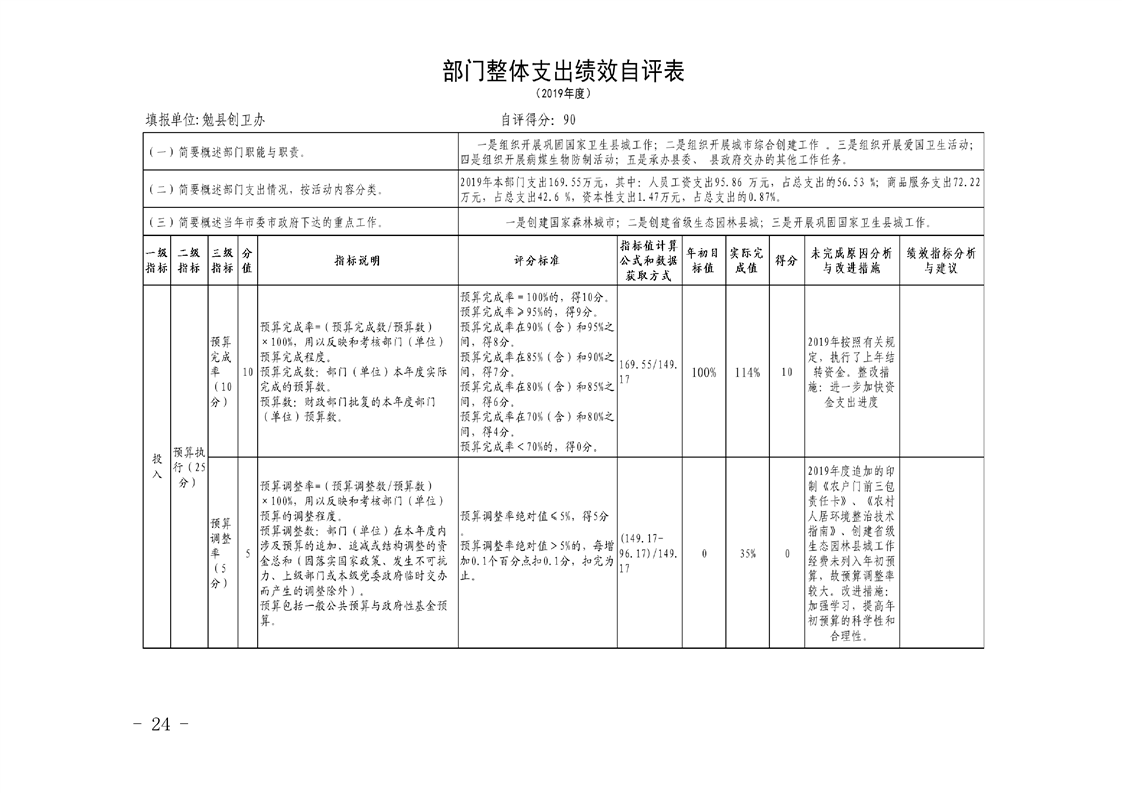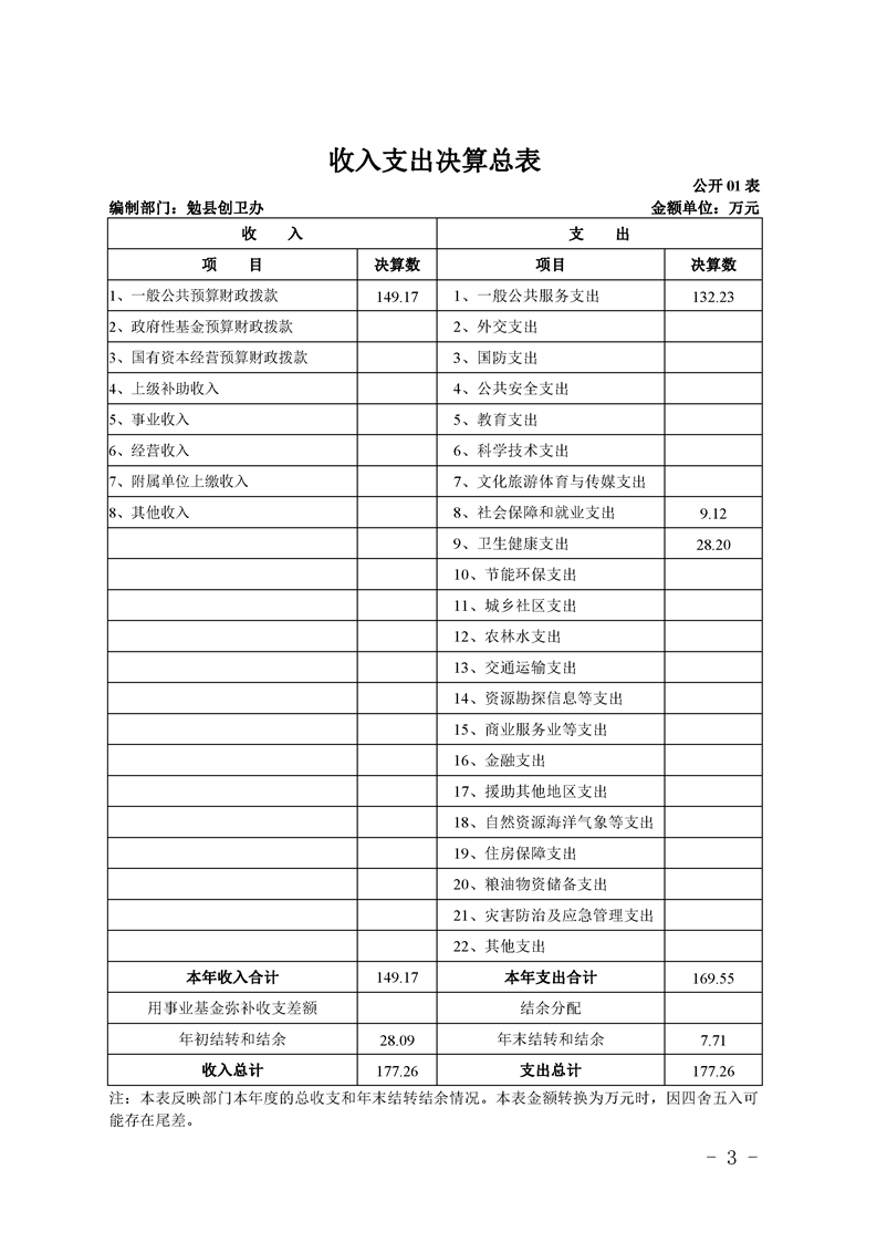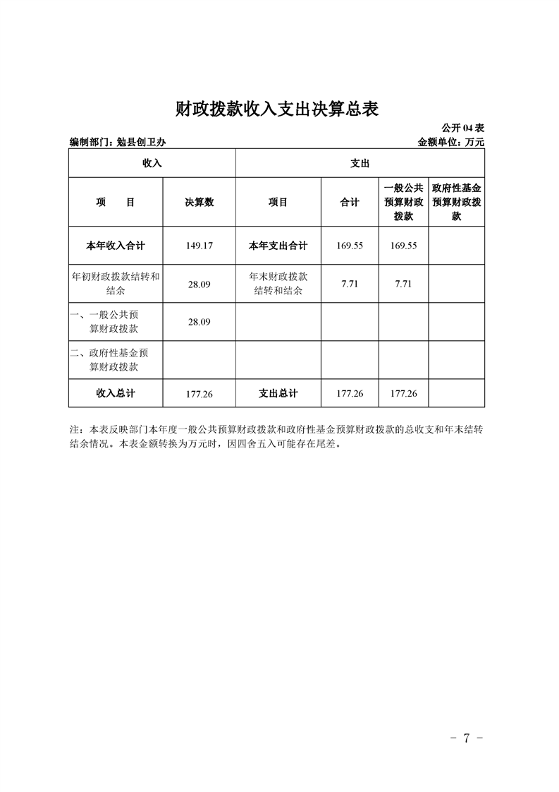 勉县创建国家卫生县城指挥部办公室2019年部门决算公开