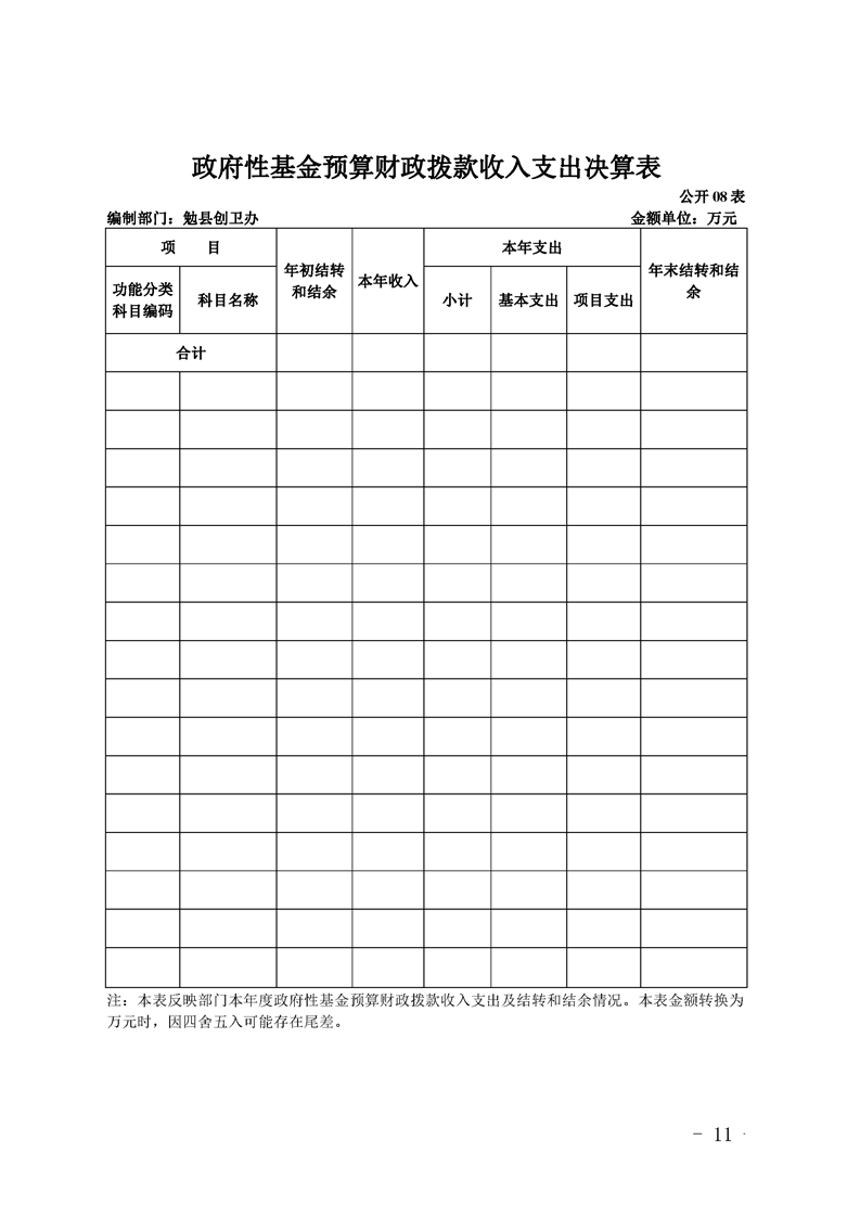 2019年县级部门决算公开目录