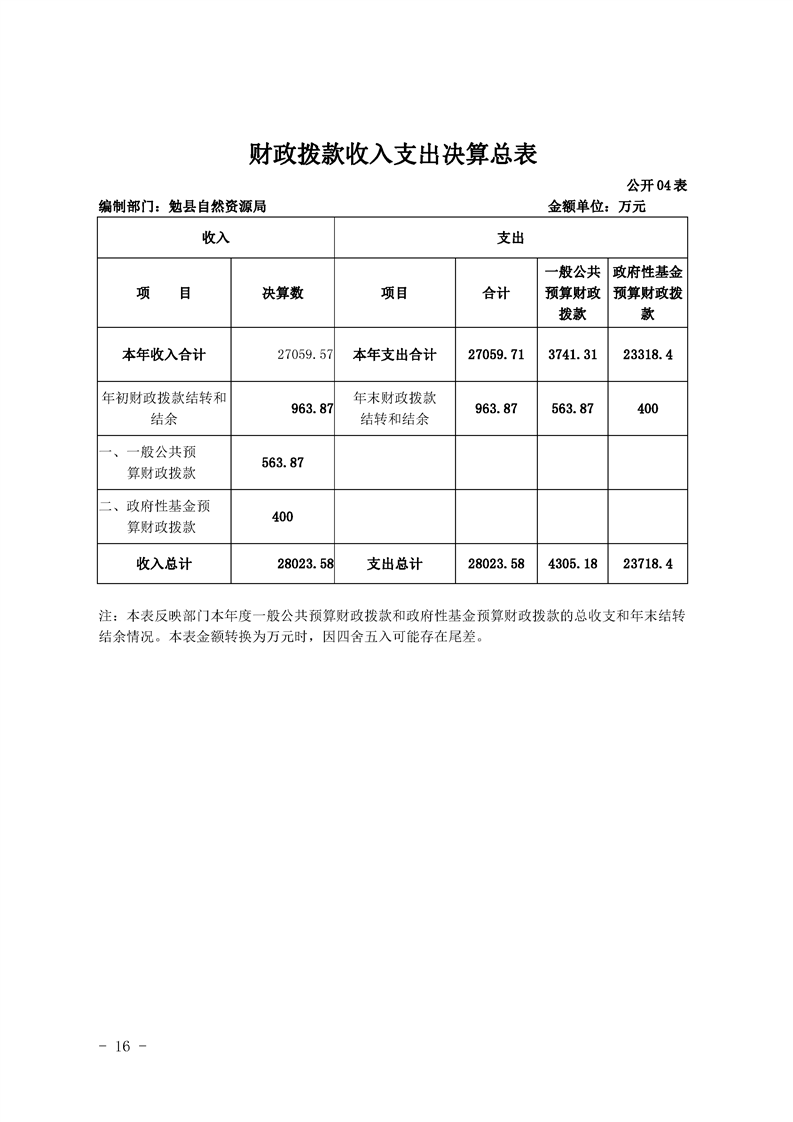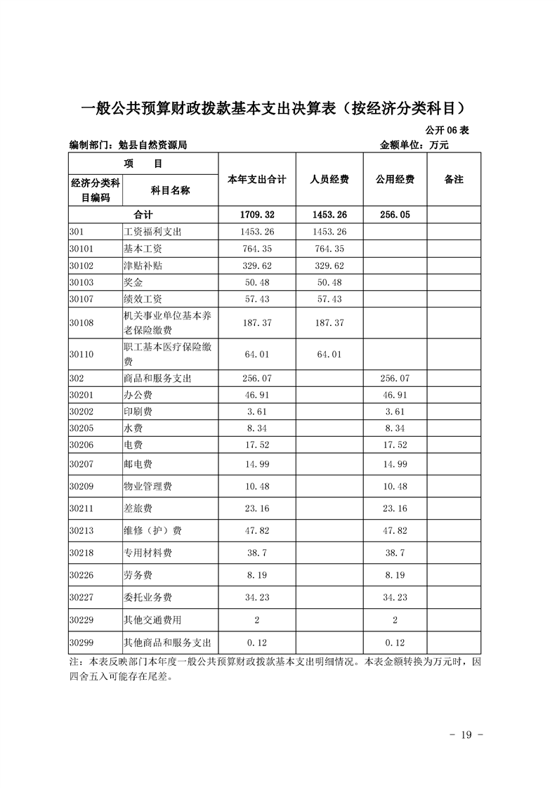 勉县自然资源局2019年部门决算公开