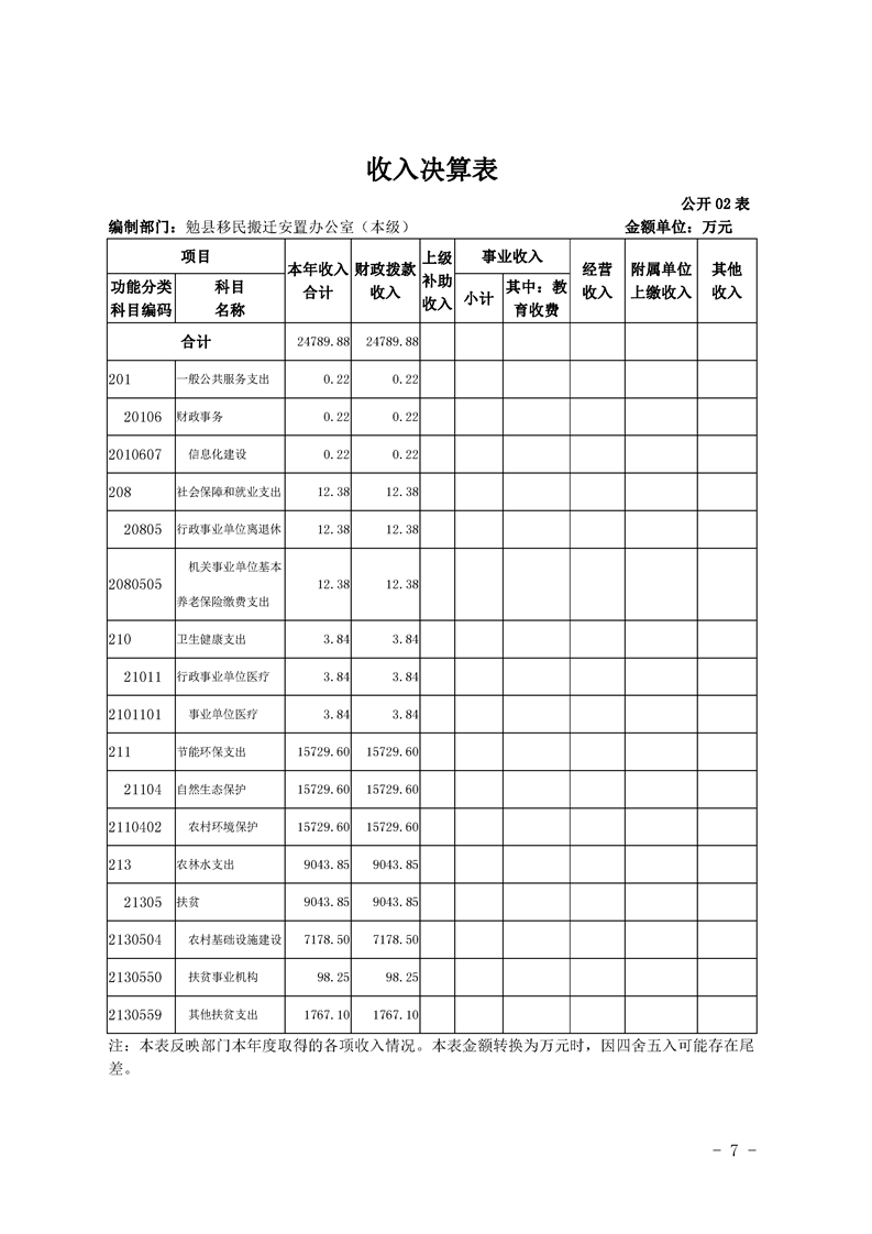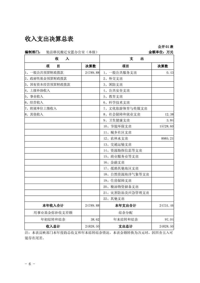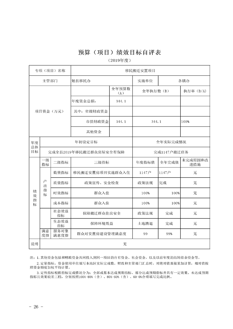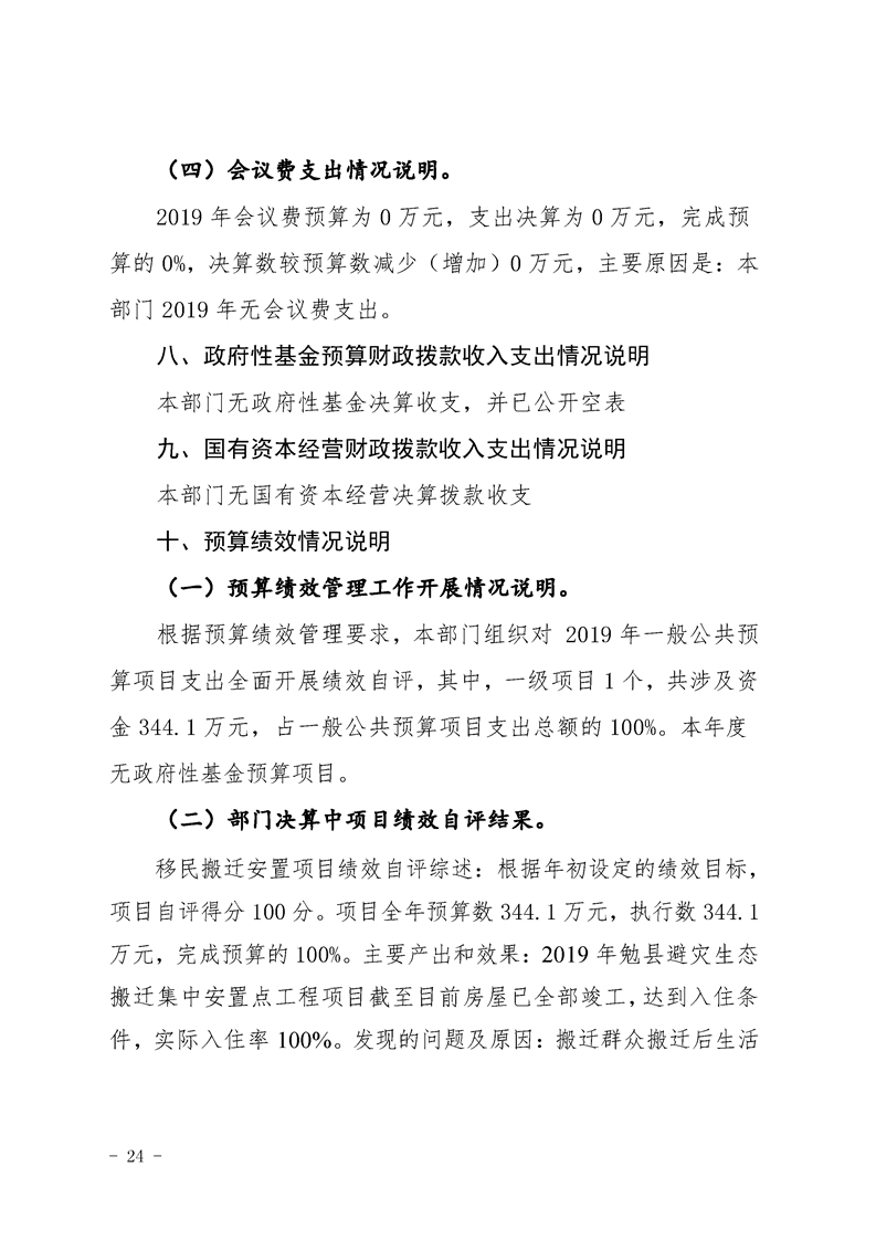 勉县移民(脱贫)搬迁工作办公室2019年部门决算公开