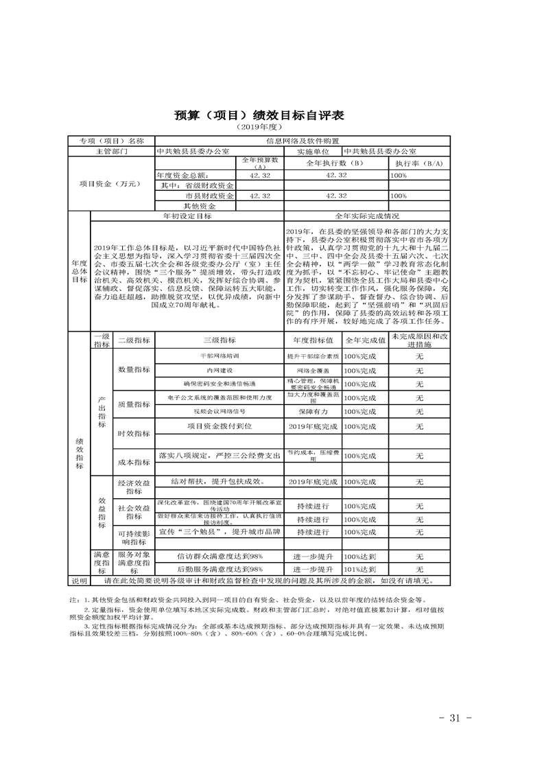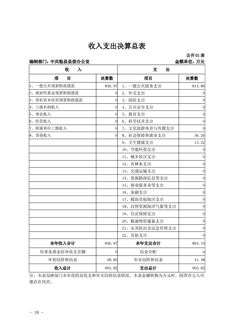中共勉县县委办公室2019年部门决算公开