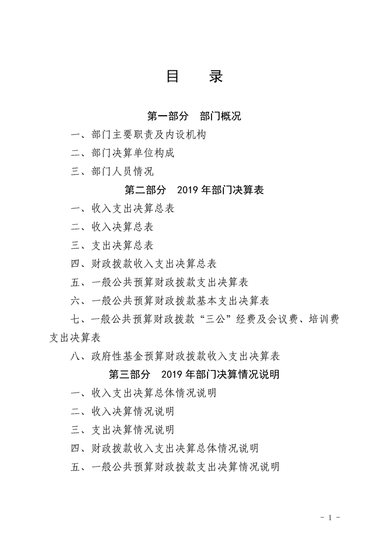 2019年县级部门决算公开目录