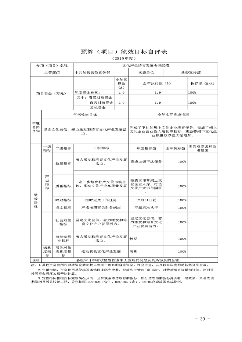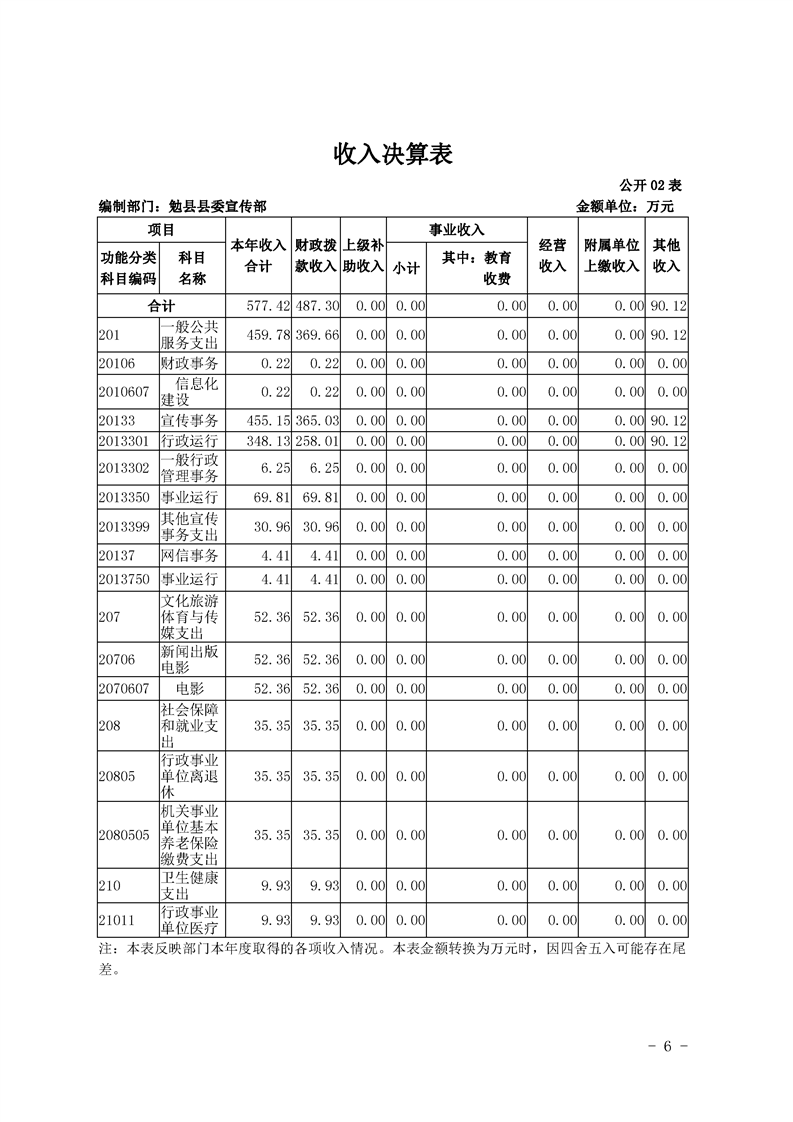 中共勉县县委宣传部2019年决算公开