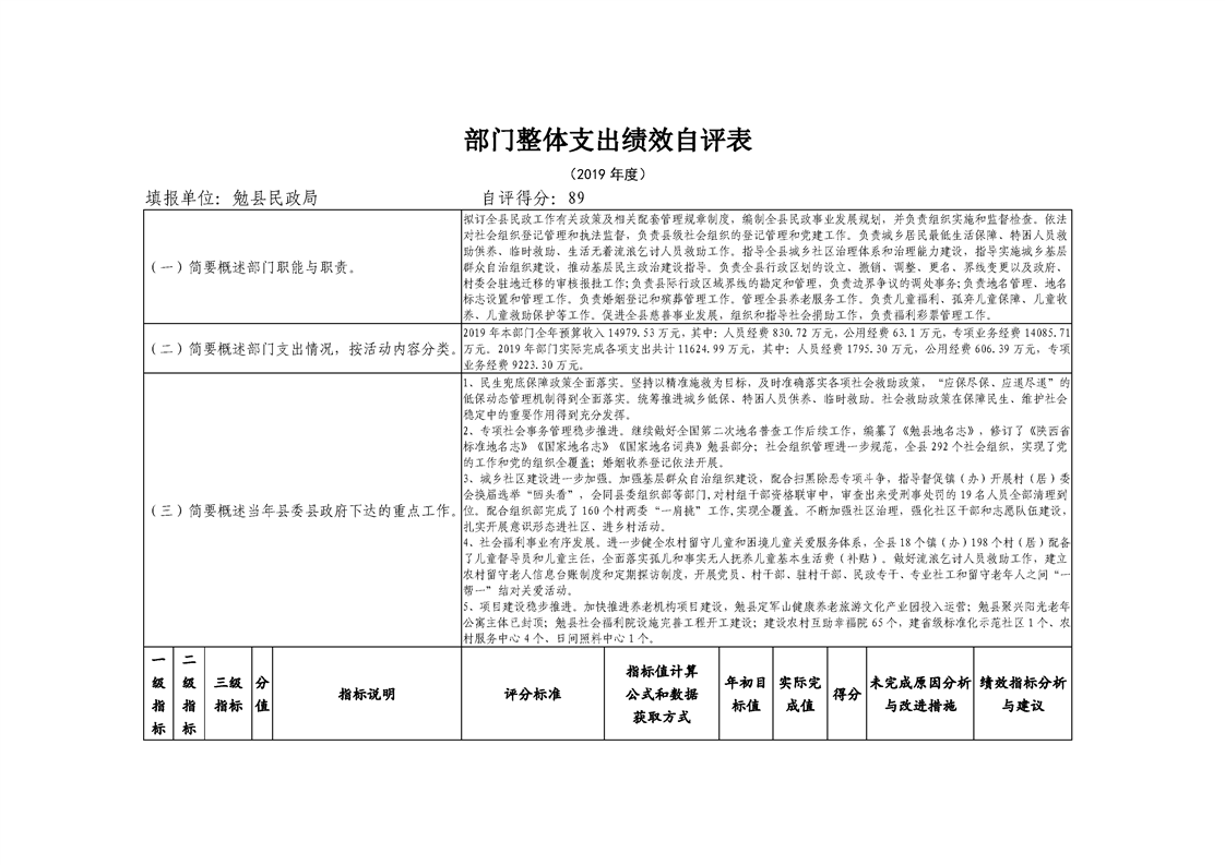 勉县民政局2019年部门决算公开