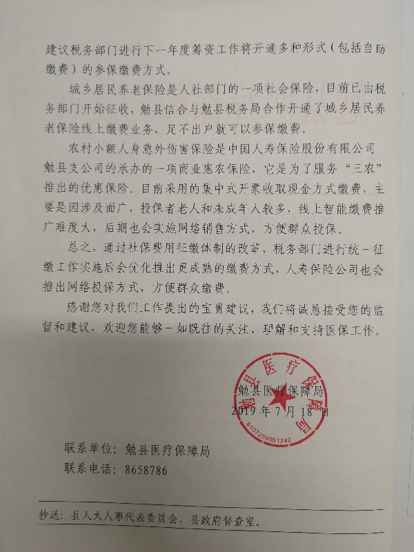内 容:新型合医、社会养老保险和意外小额保险等各项基本保险,在政府多年的督促和引导下,现在已走上正轨,城市居民新型合医已经可以通过终端自助缴费,但在农村还没有实现这一功能。社会养老保险和意外小额保险自助缴费通道还未开通,群众缴费不便,为缴费到处跑路,特别是全家外出人员,还要专程回家,极为不便。