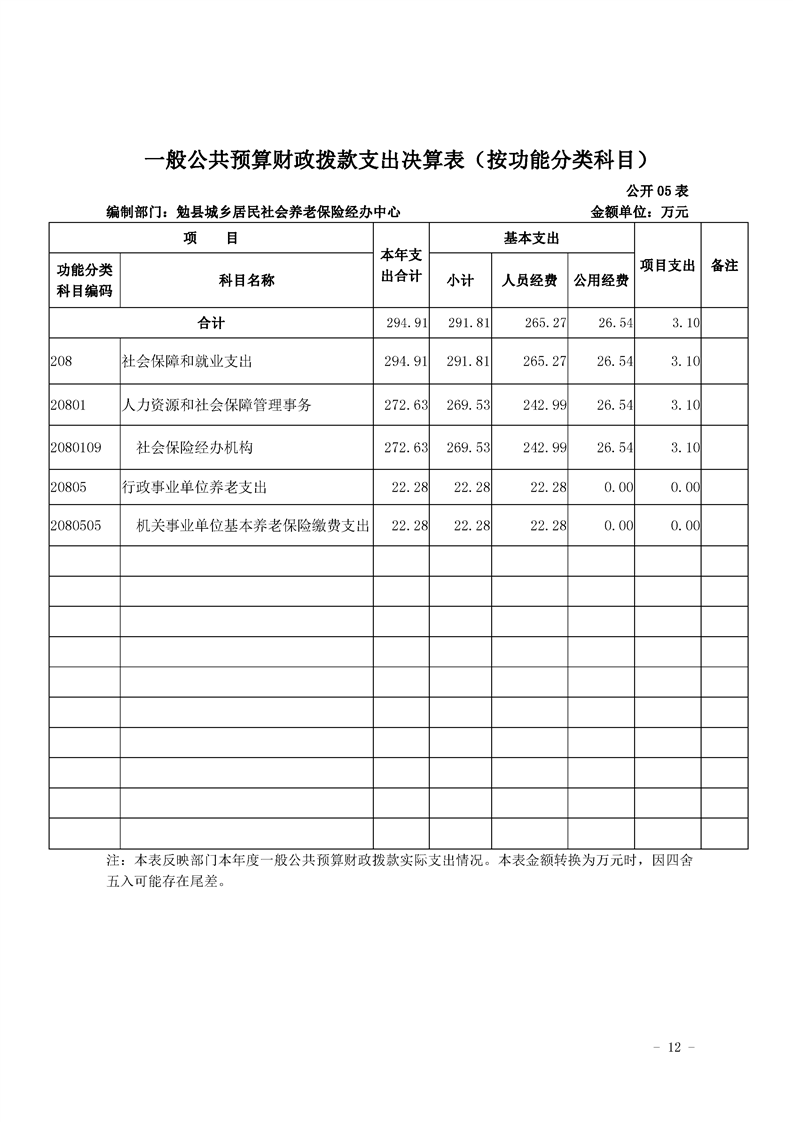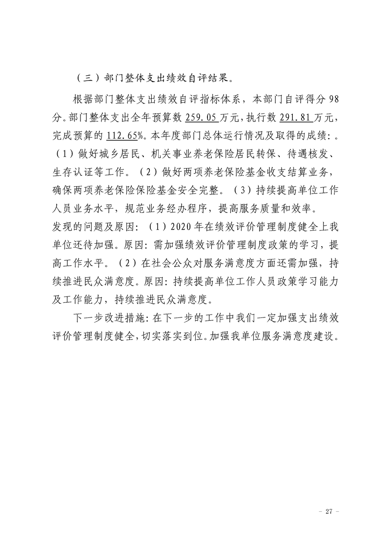 勉县城乡居民社会养老保险经办中心2020年部门决算公开