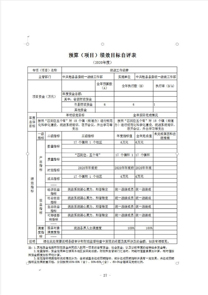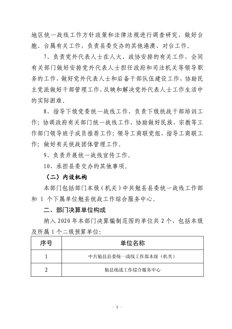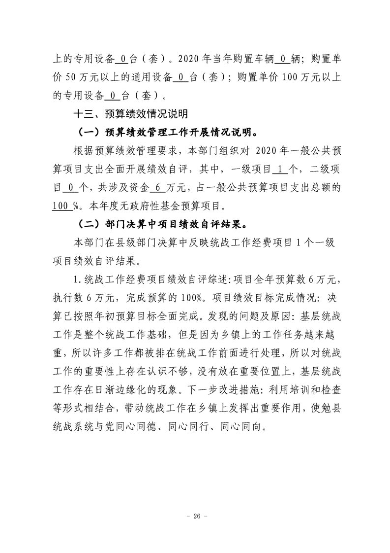勉县县委统战部2020年部门决算公开