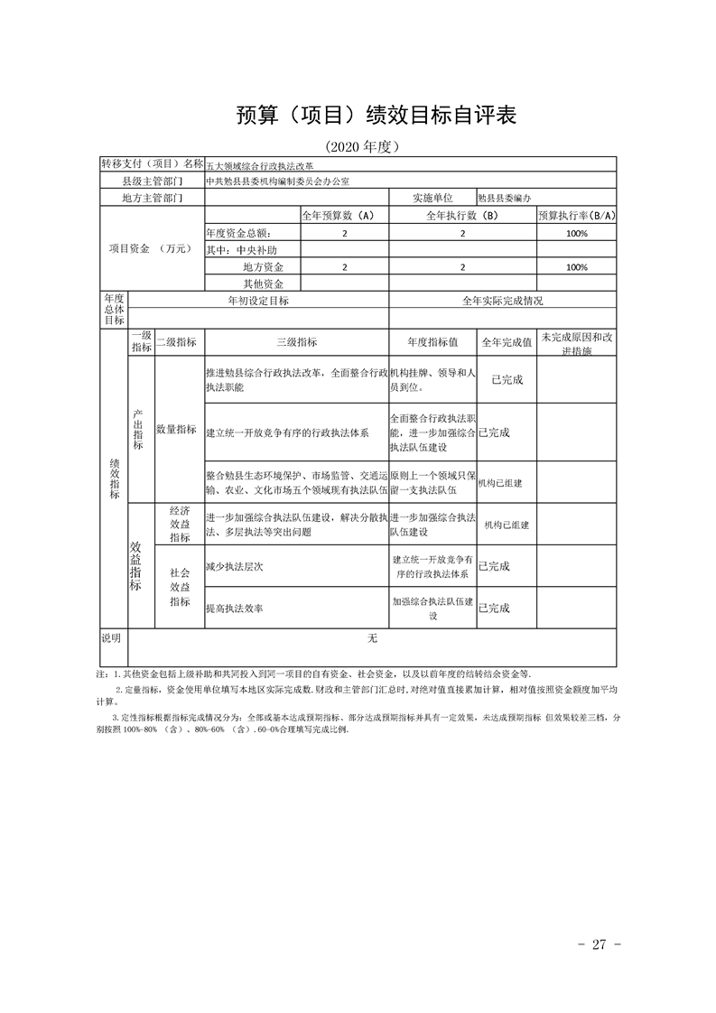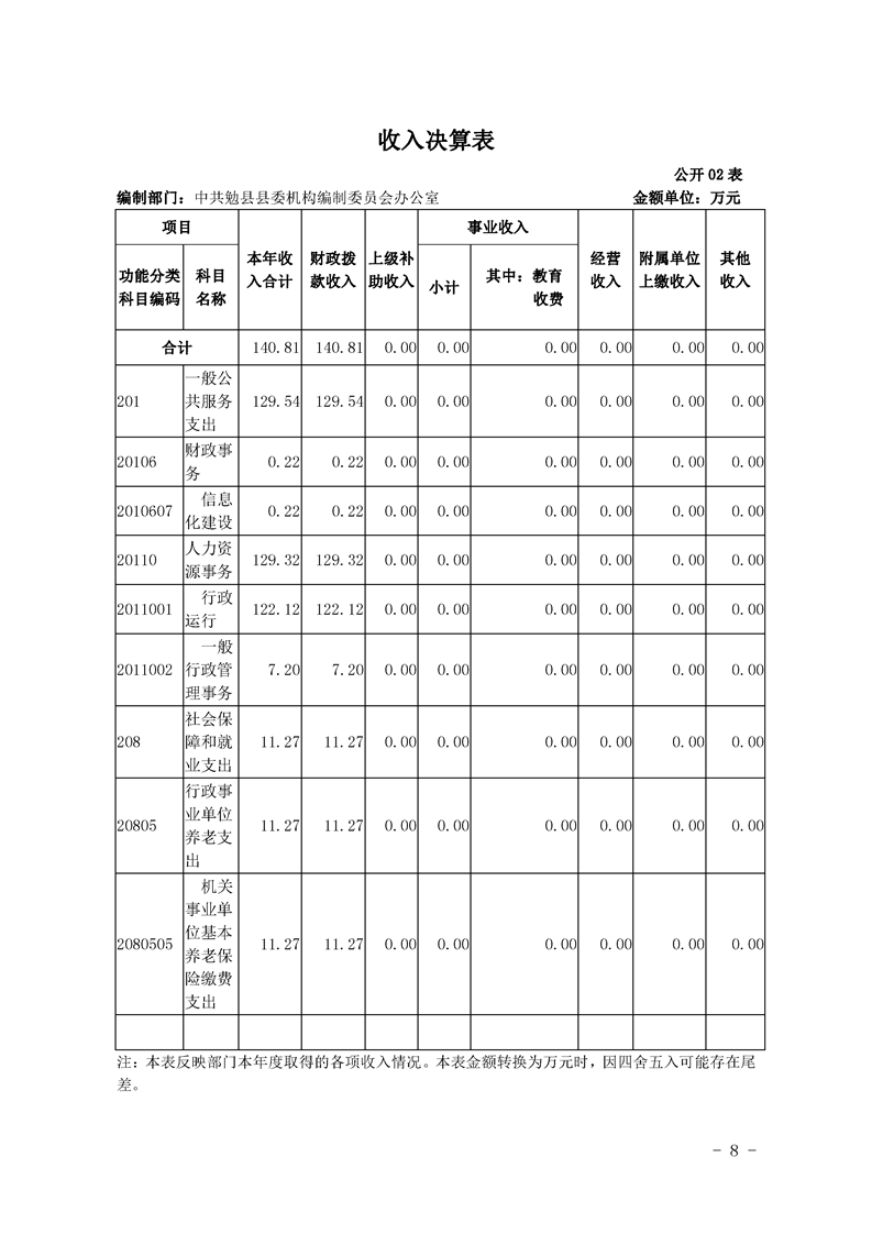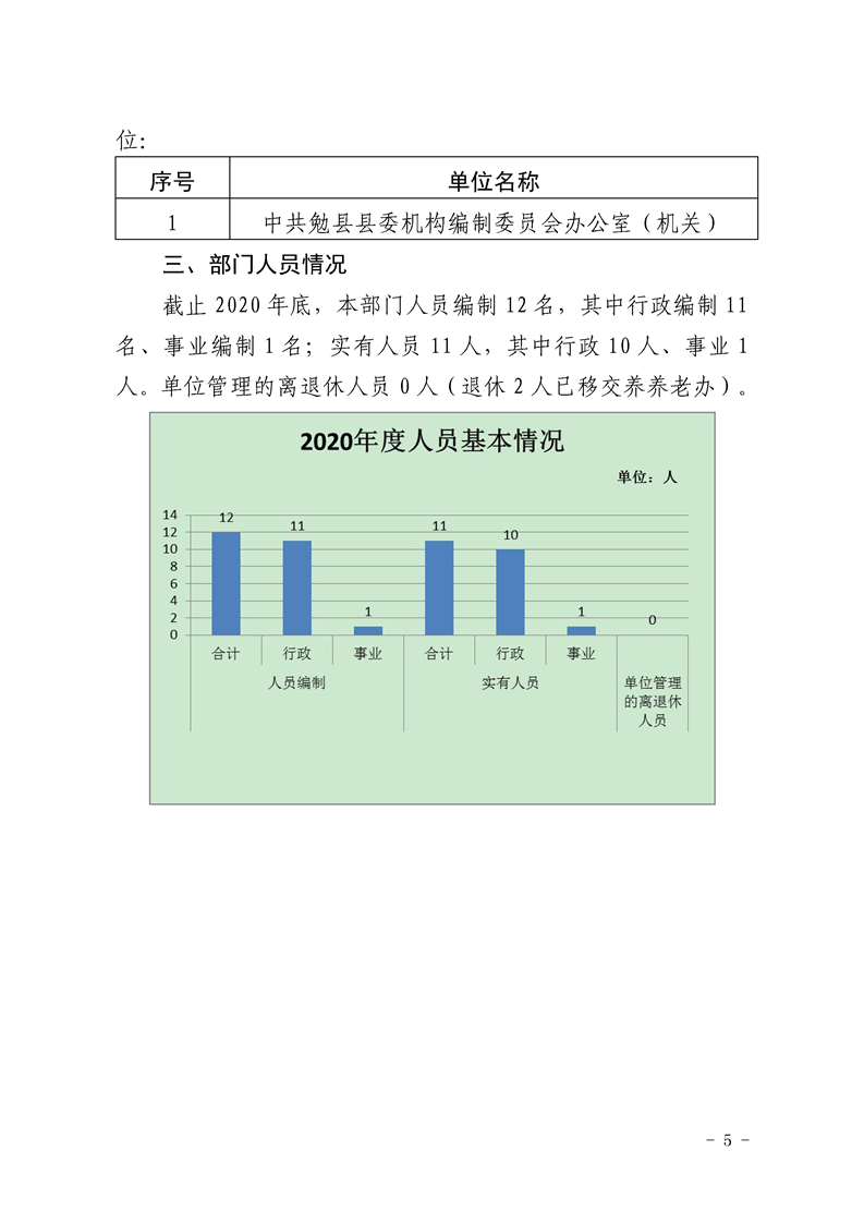 中共勉县县委机构编制委员会办公室2020年部门决算公开