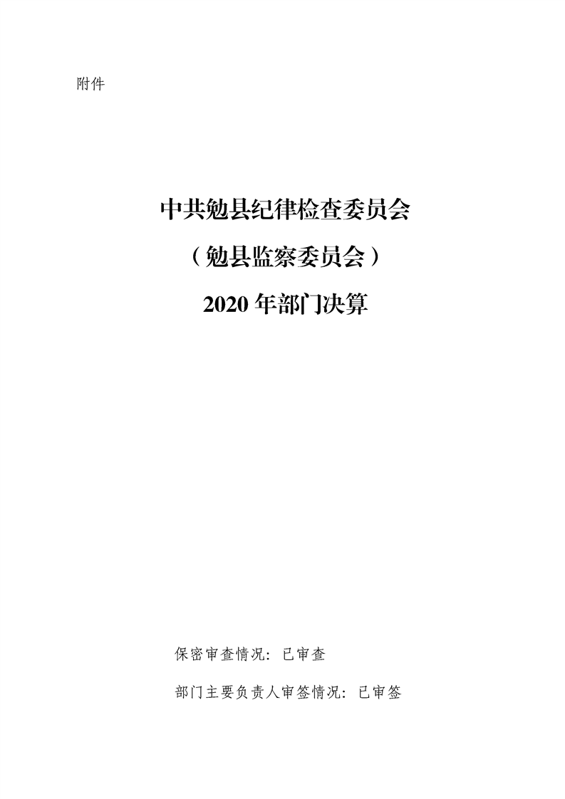 中共勉县纪律检查委员会 (勉县监察委员会)2020年部门决算公开