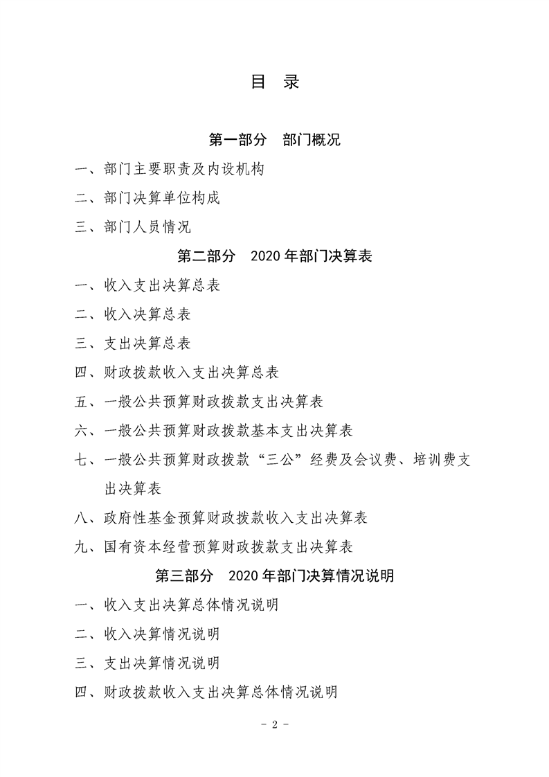 2020年县级部门决算公开目录