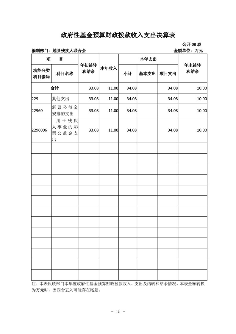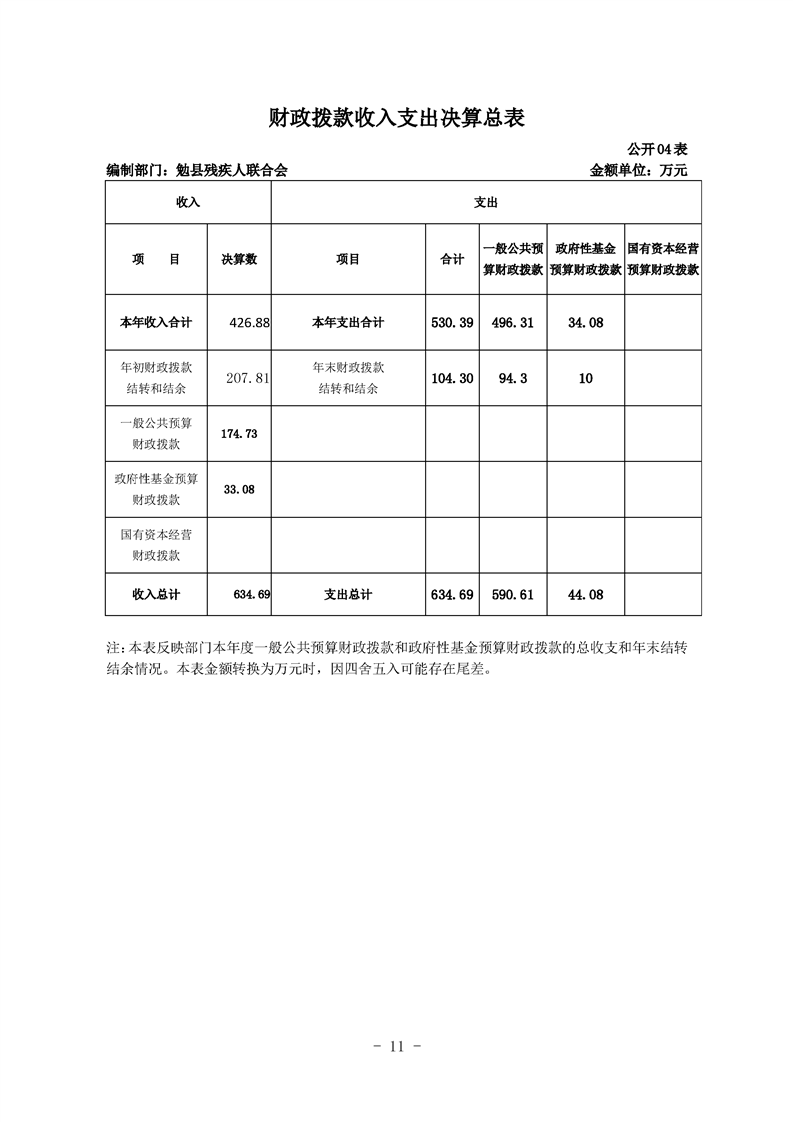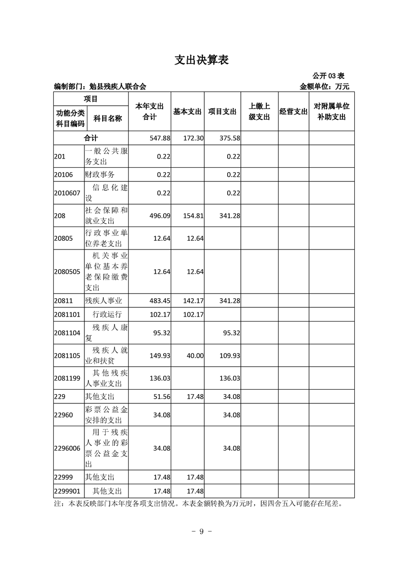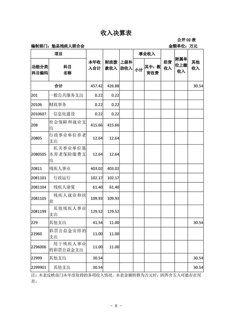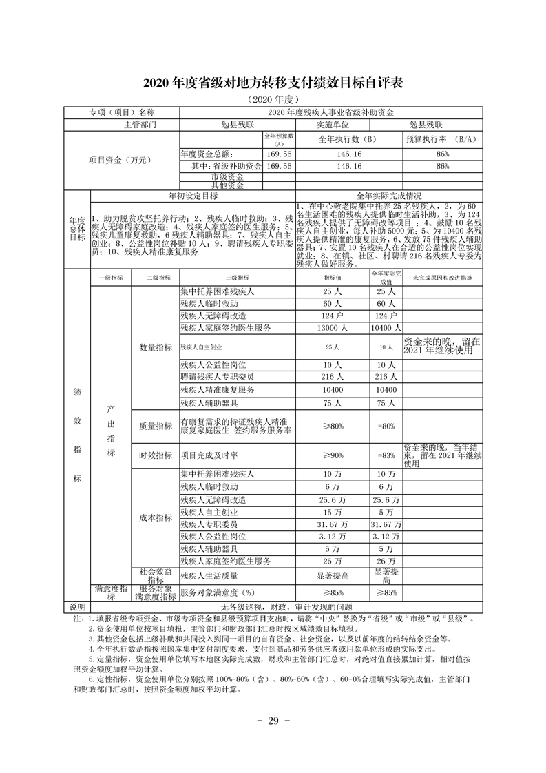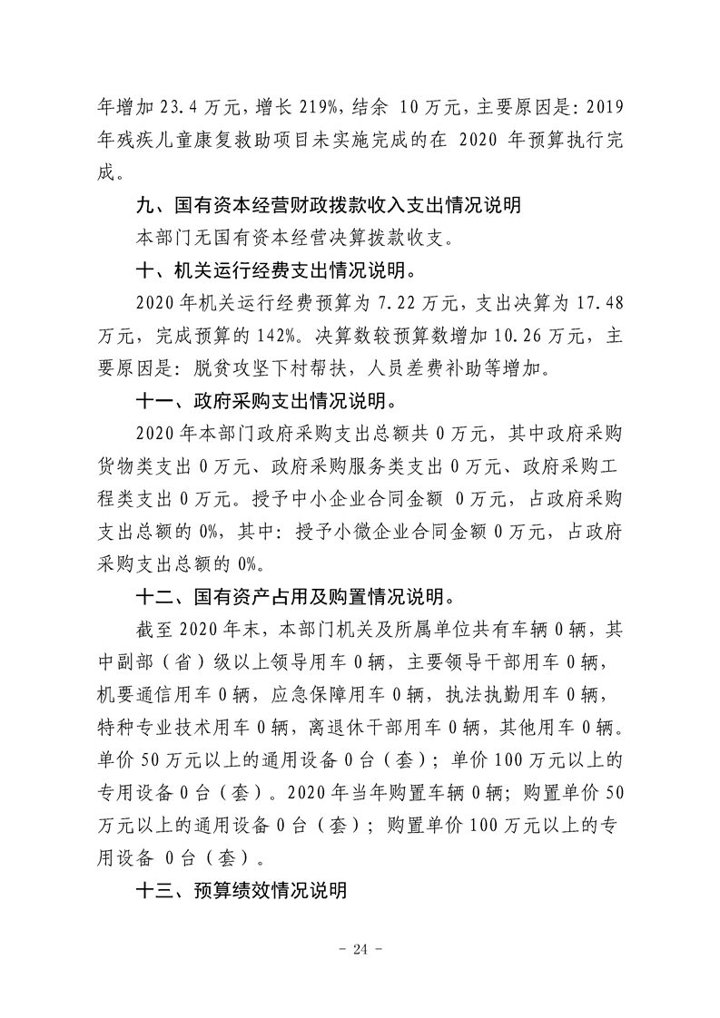 勉县残疾人联合会2020年勉县部门决算公开