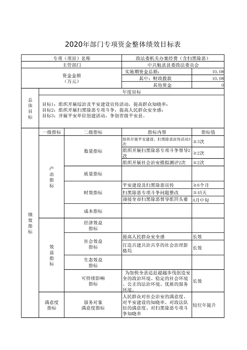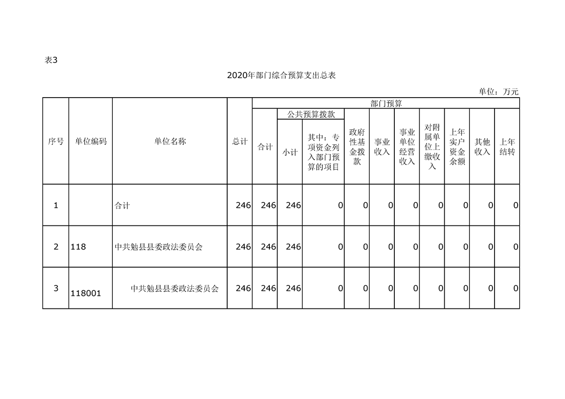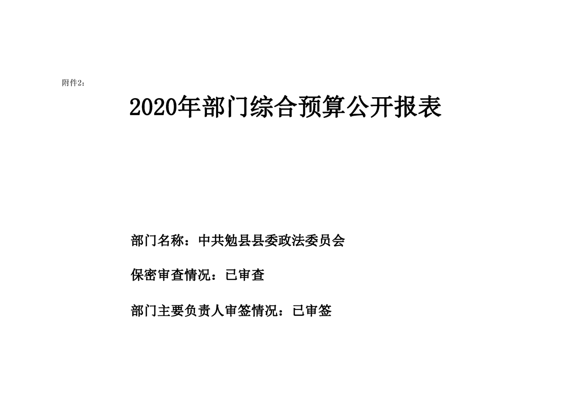 中共勉县县委政法委2020年部门预算公开