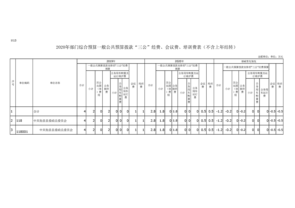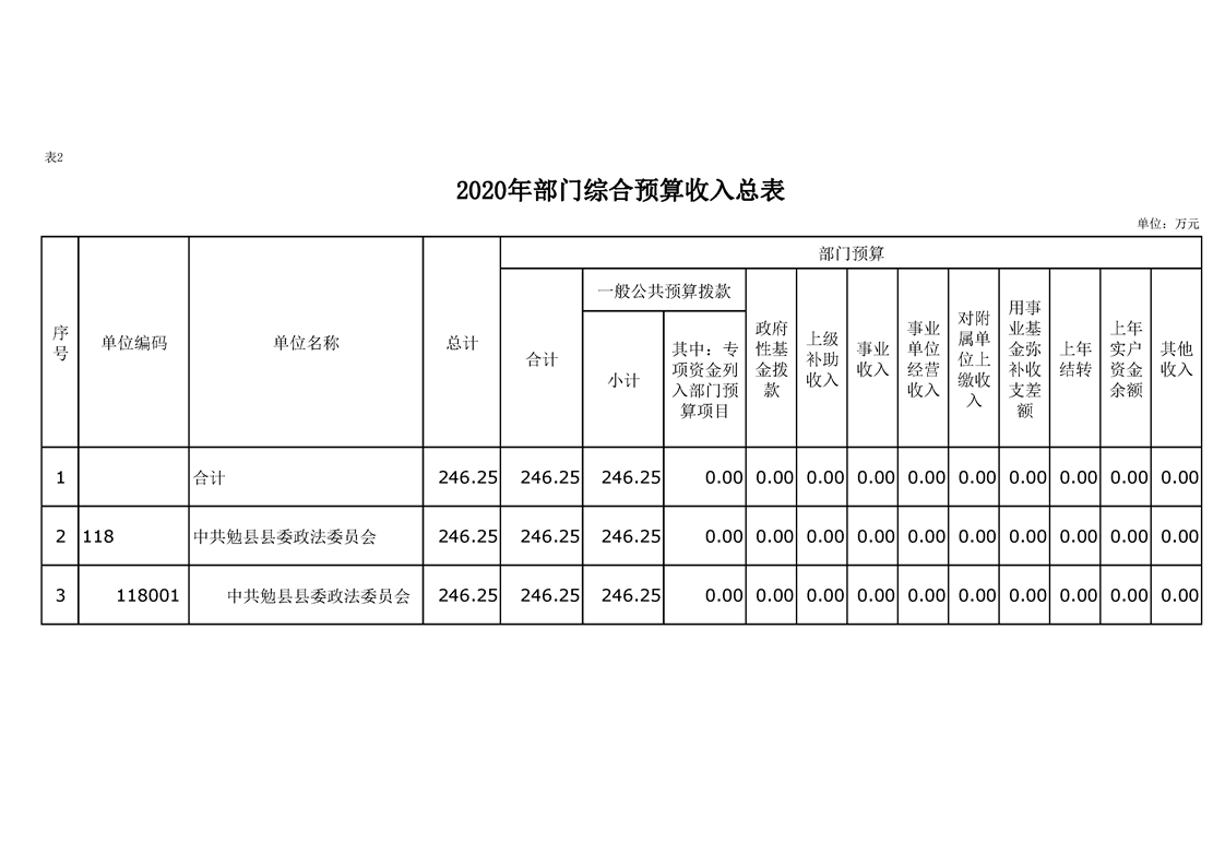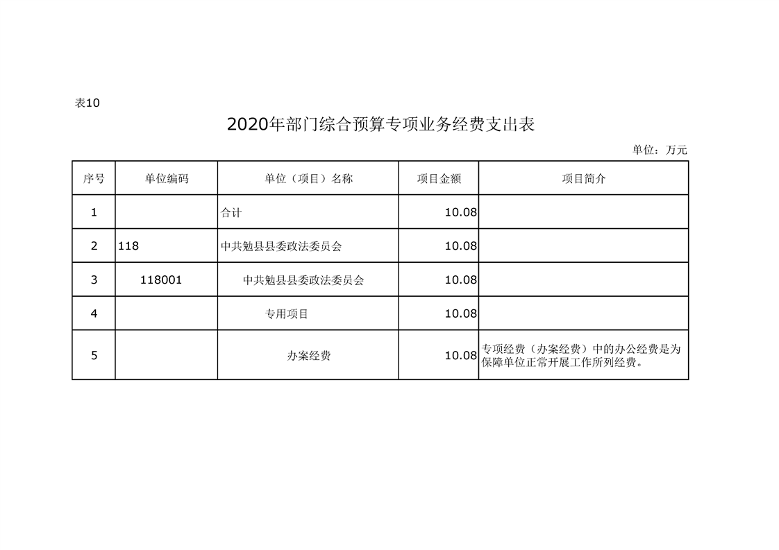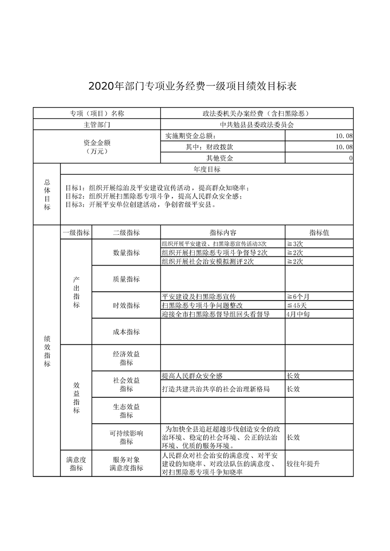 中共勉县县委政法委2020年部门预算公开