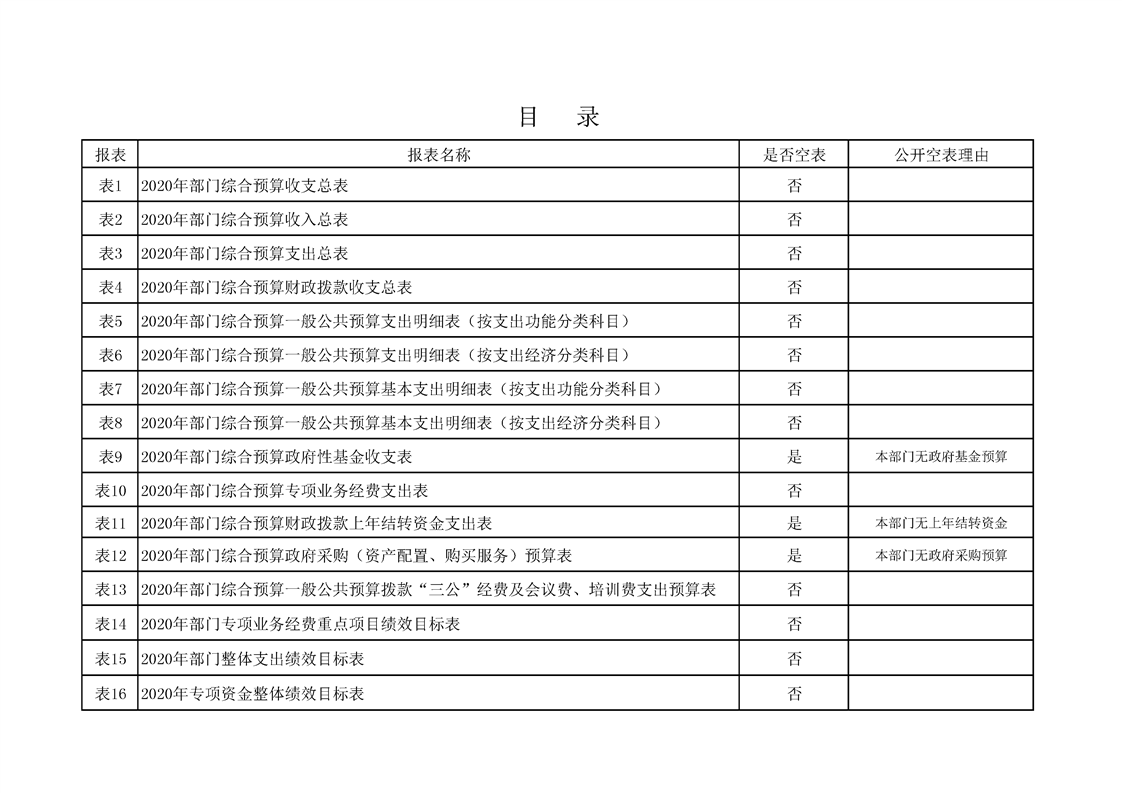 2020年县级部门预算公开目录