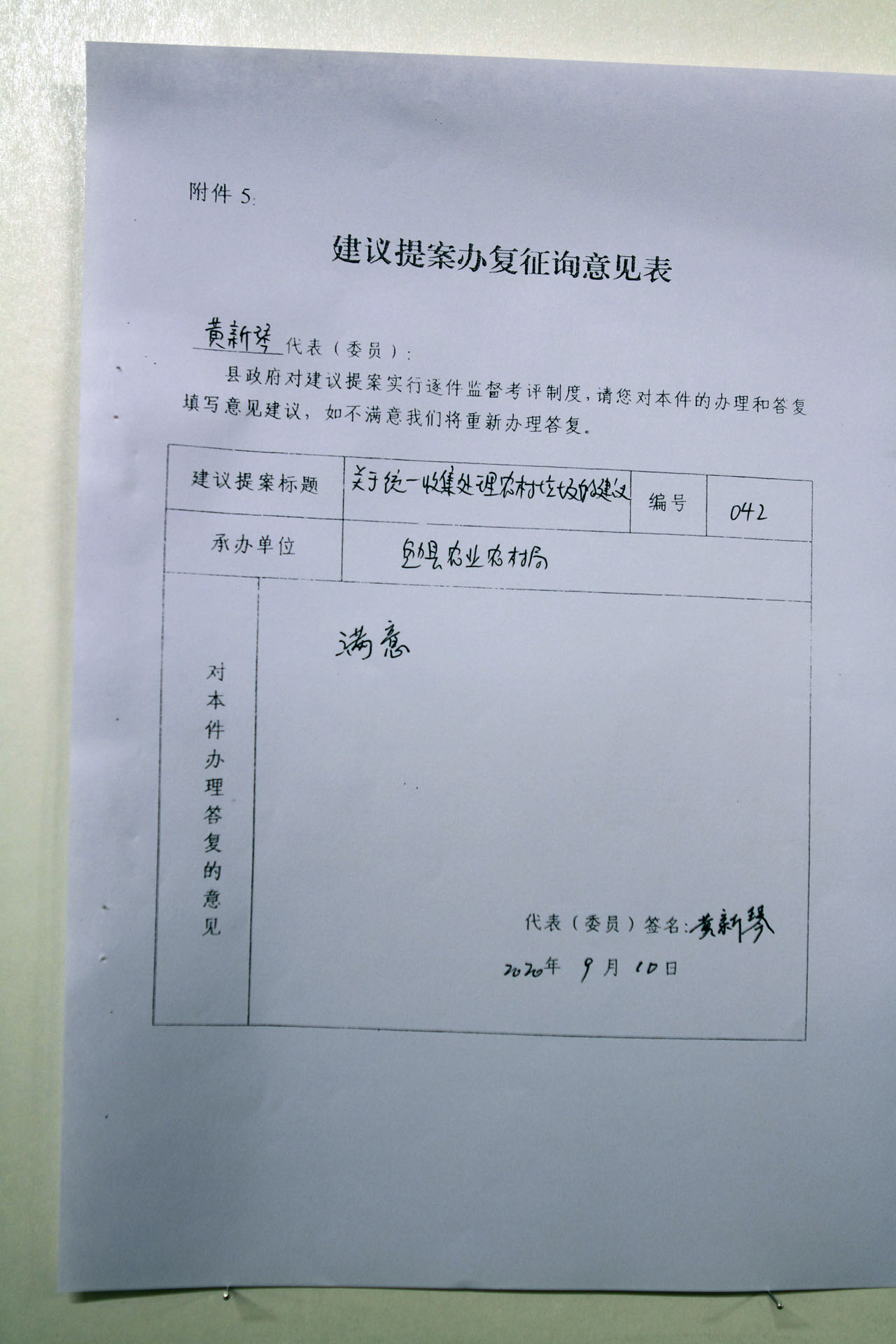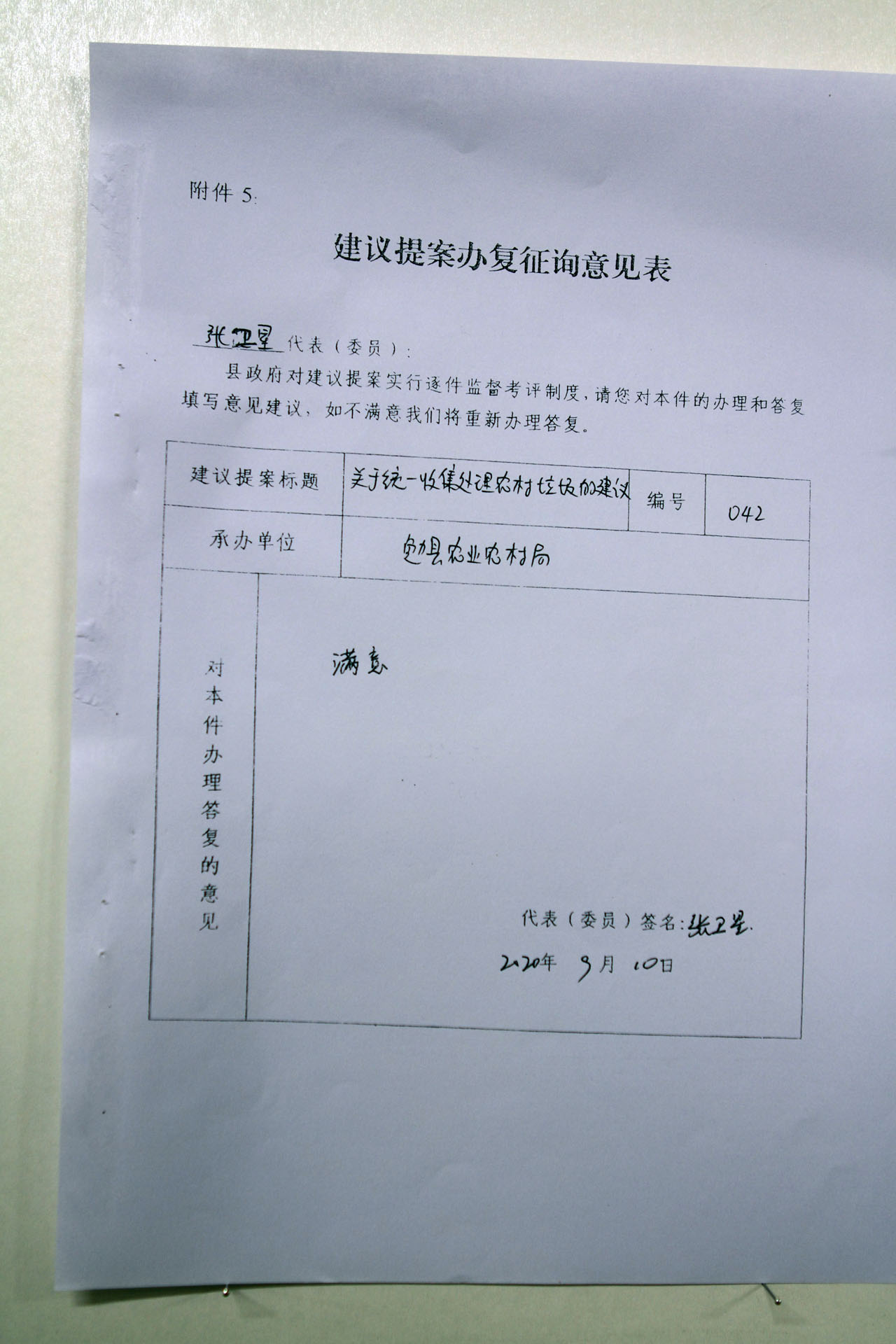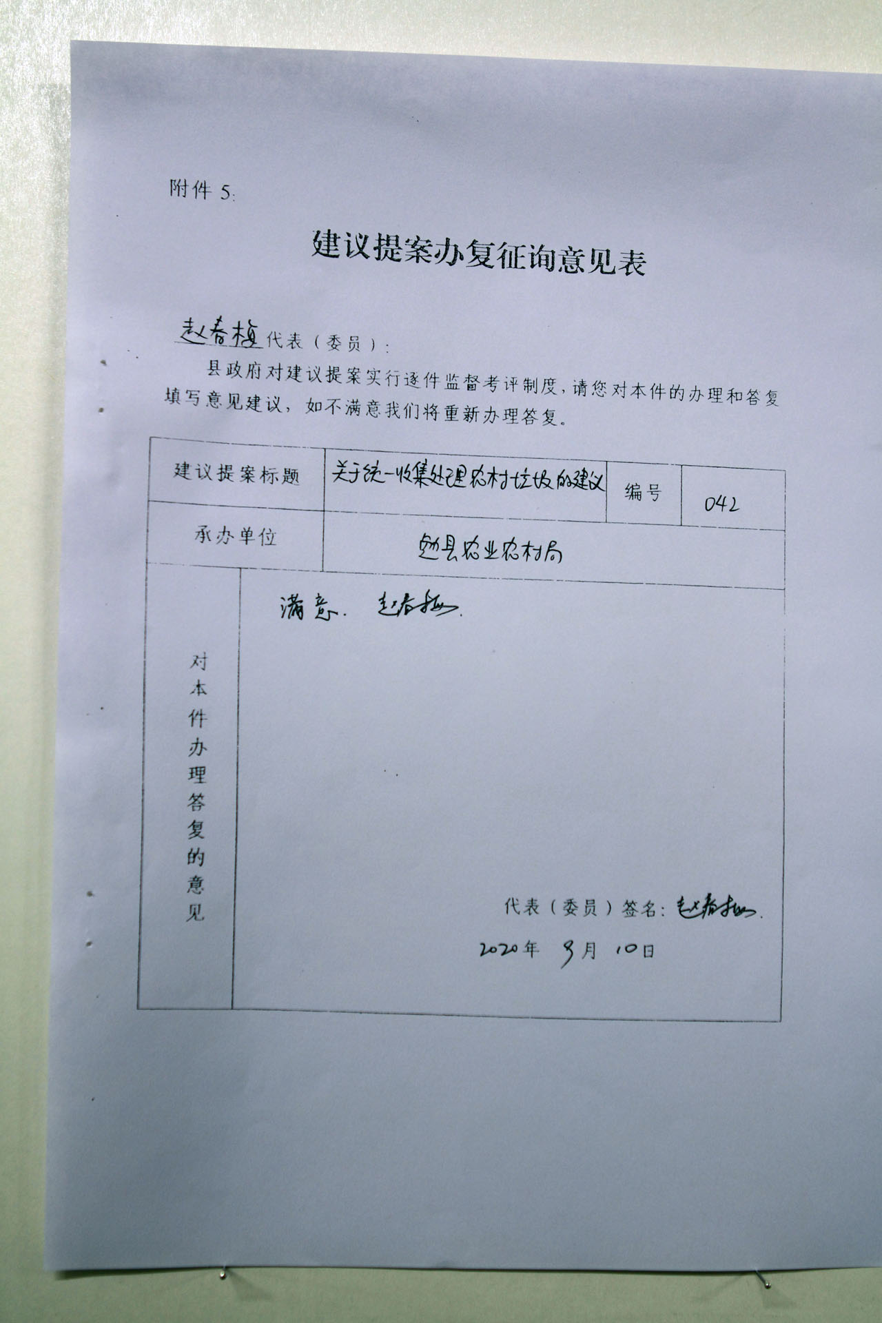 关于统一收集处理农村垃圾的建议