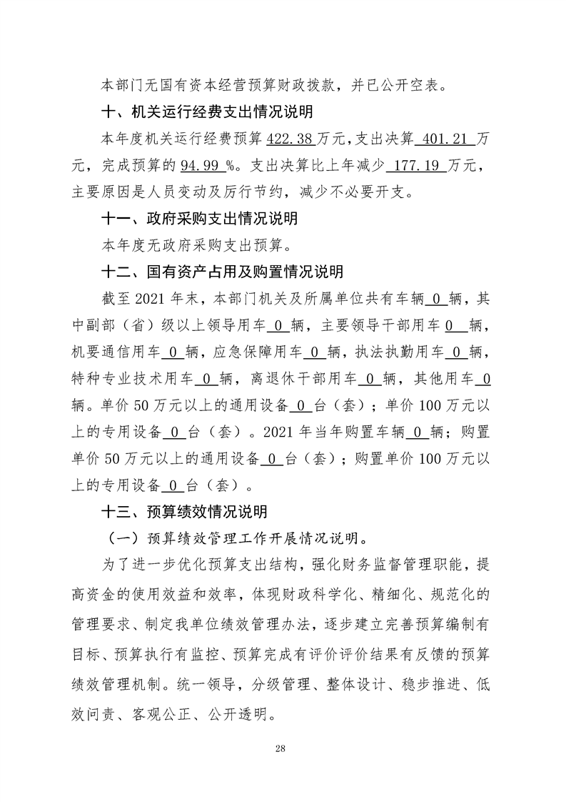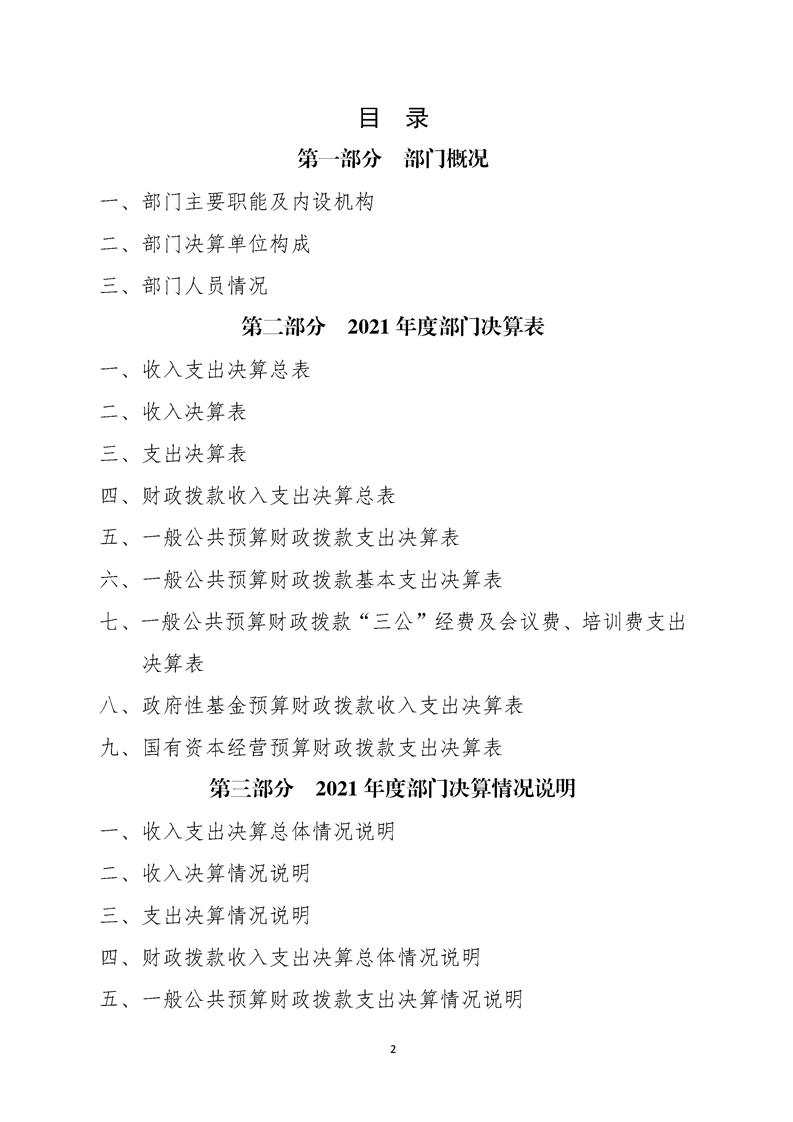 2021年县级部门决算公开目录