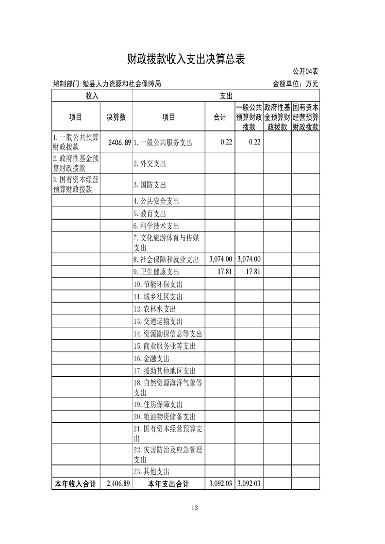 勉县人力资源和社会保障局2021决算公开