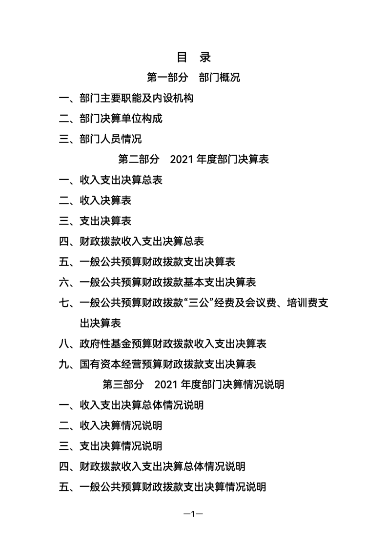 2021年县级部门决算公开目录