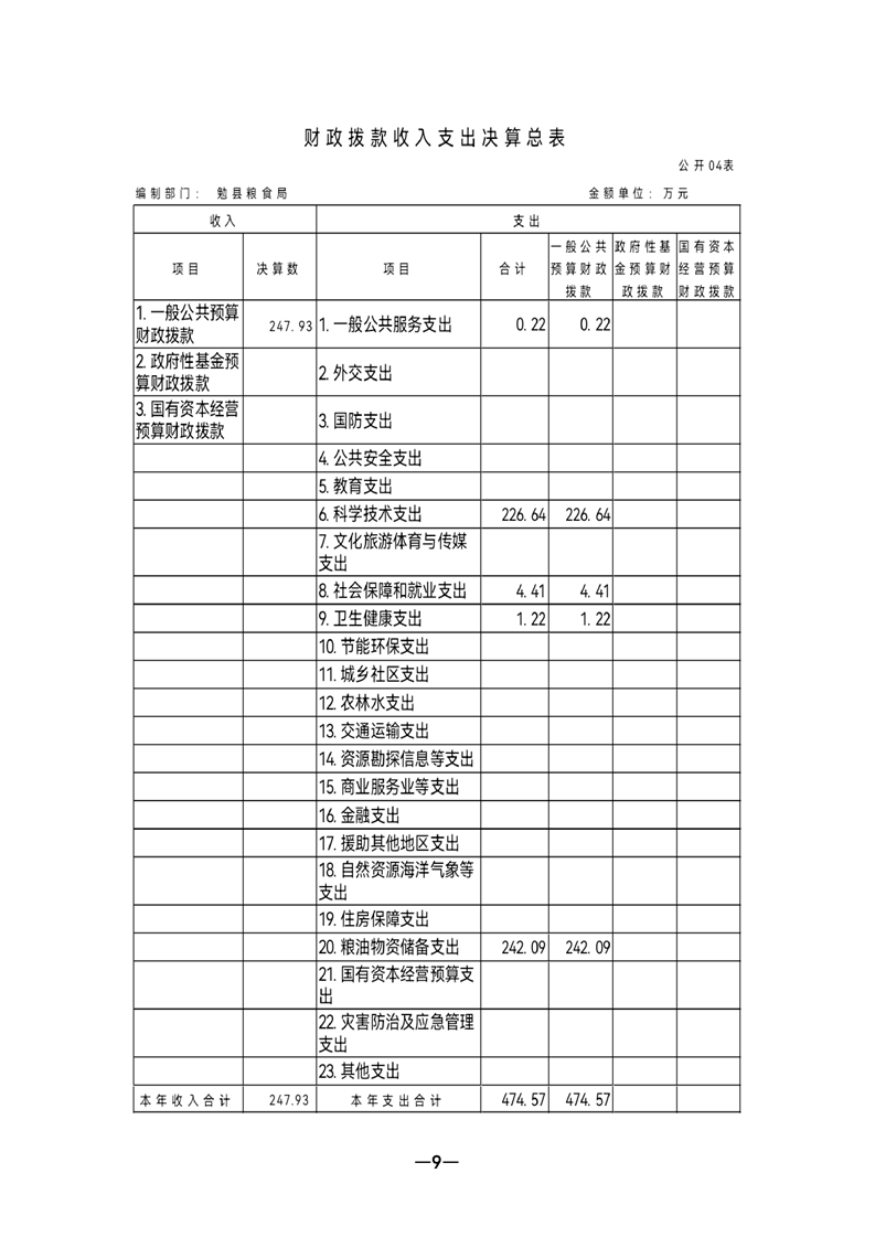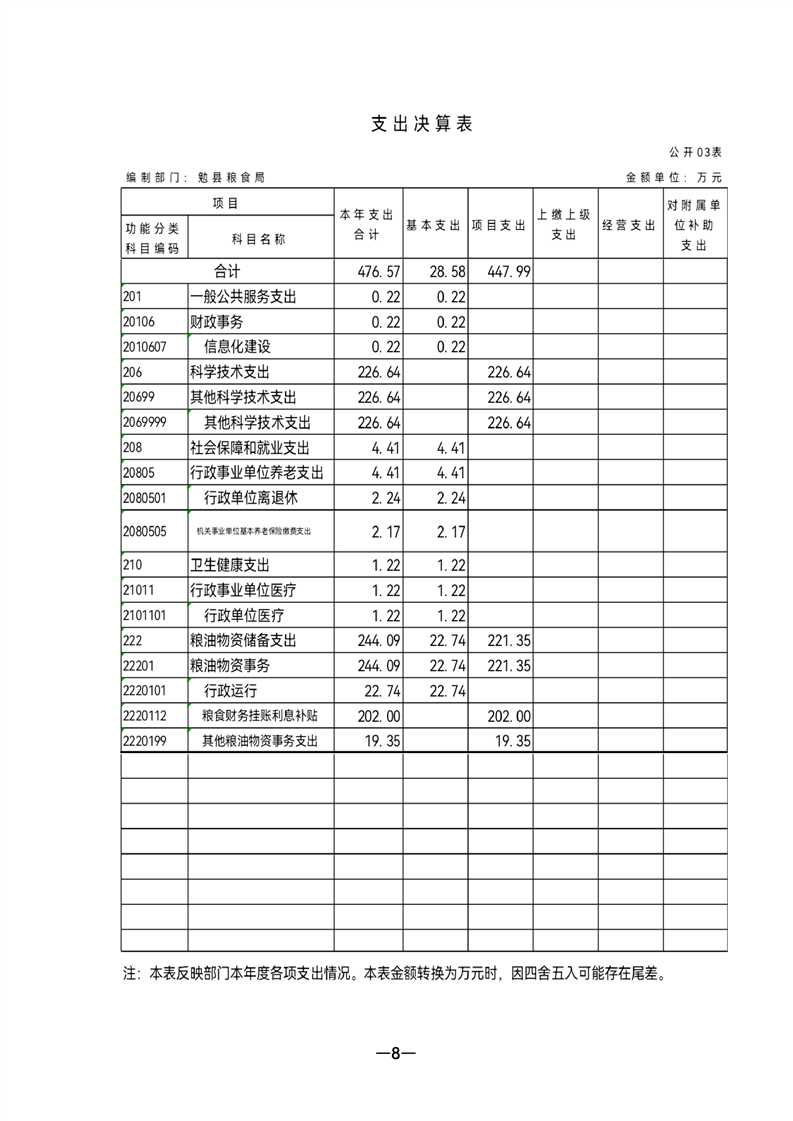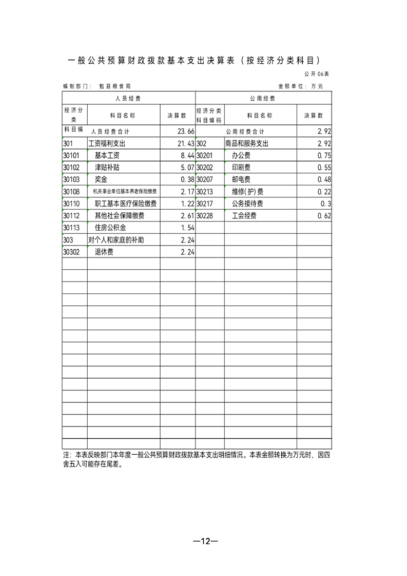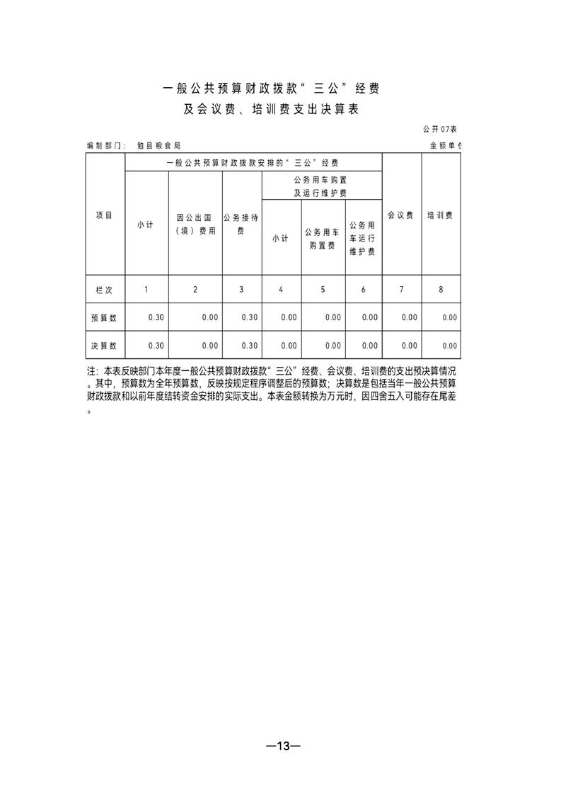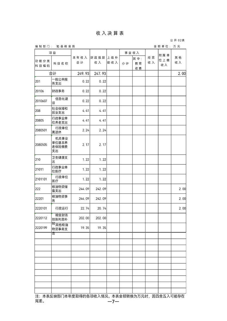 勉县粮食局2021年部门决算公开