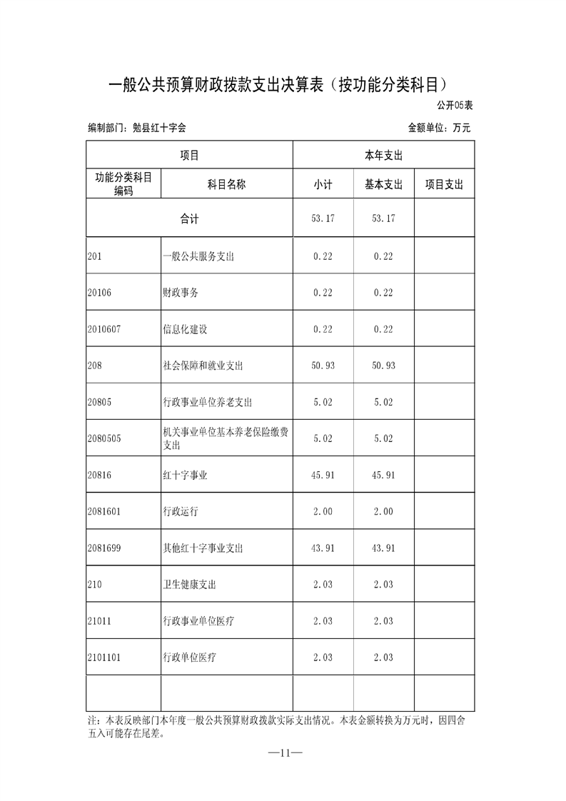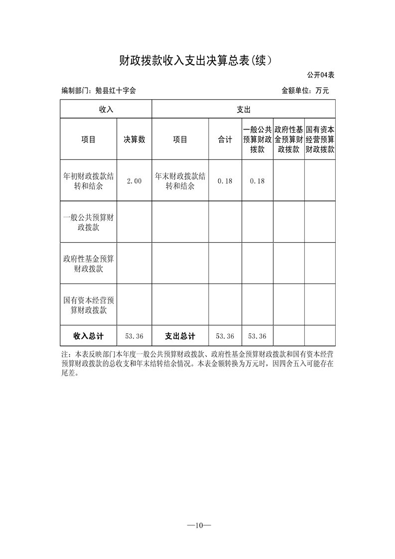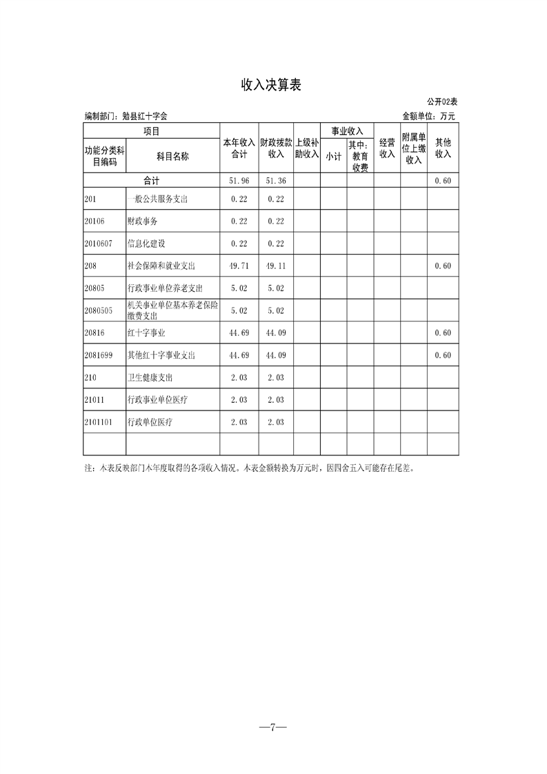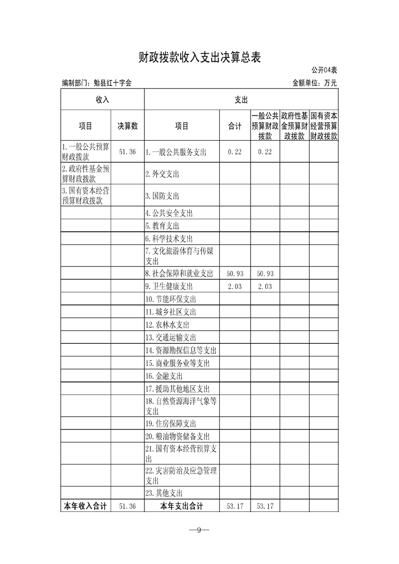 勉县红十字会2021年决算公开