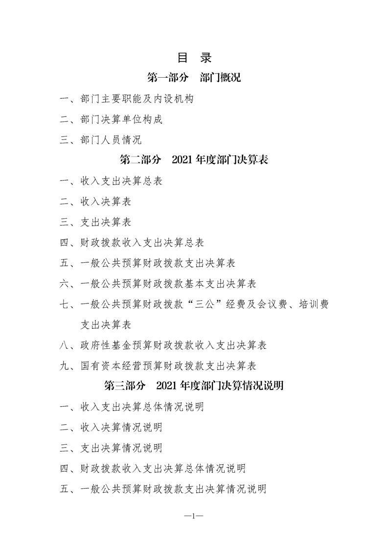 2021年县级部门决算公开目录