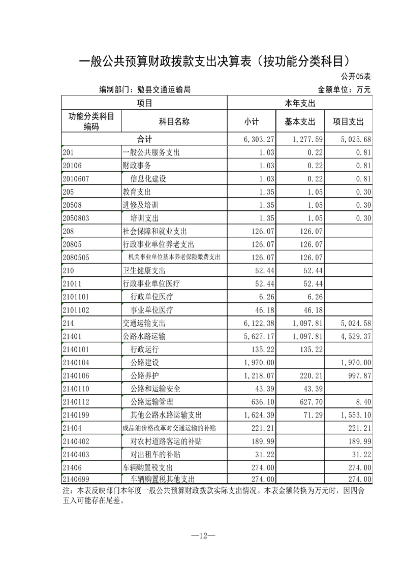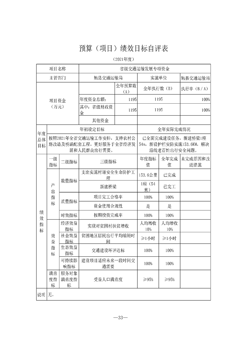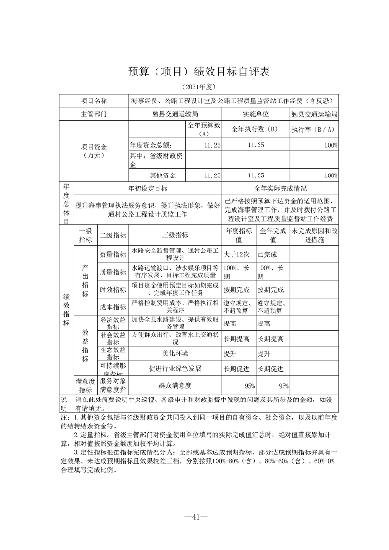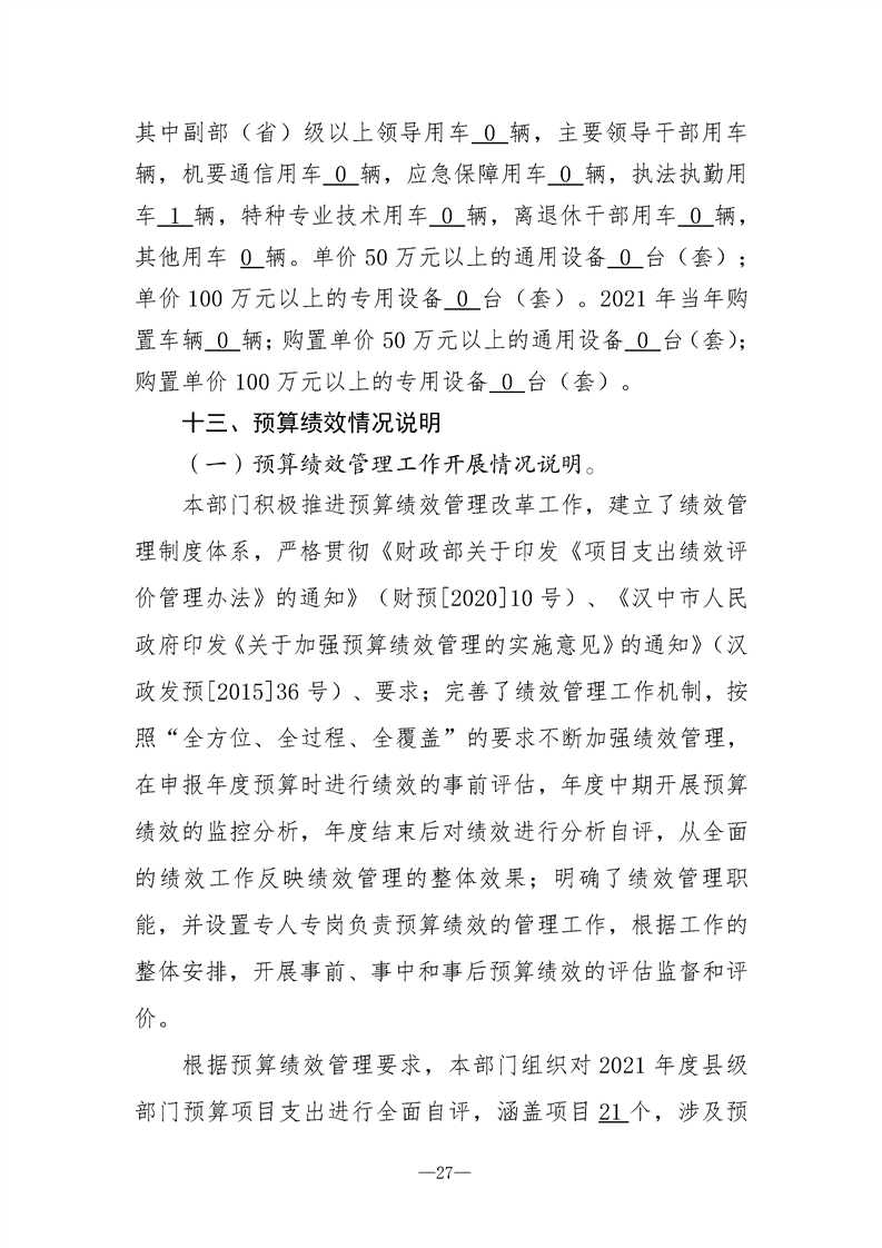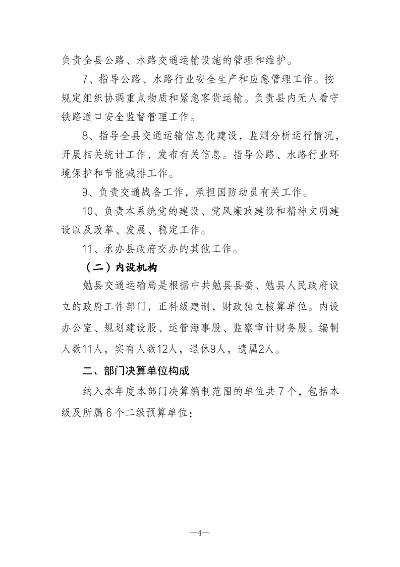 勉县交通运输局2021年勉县部门决算公开