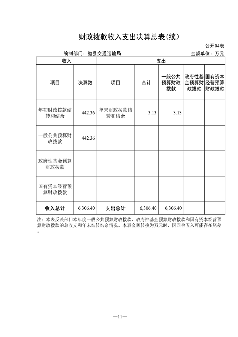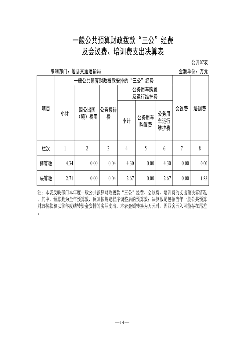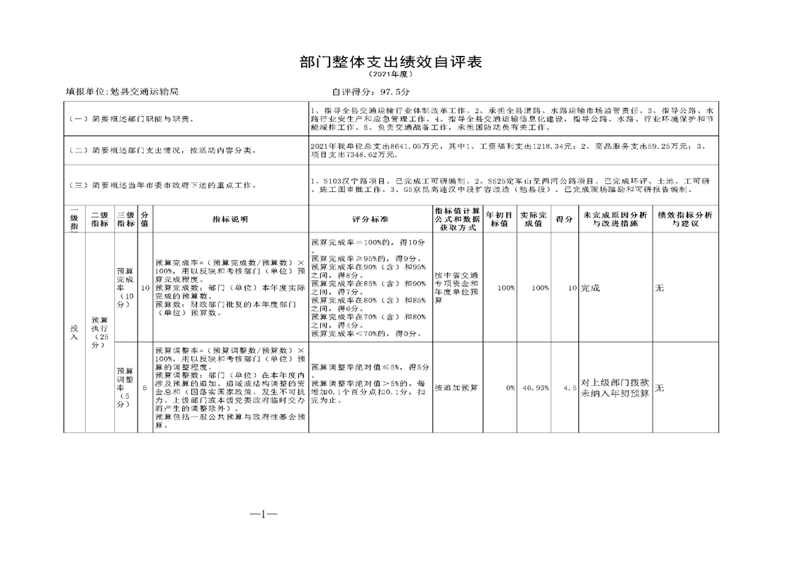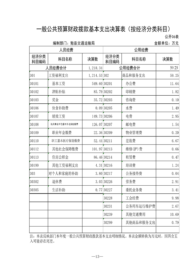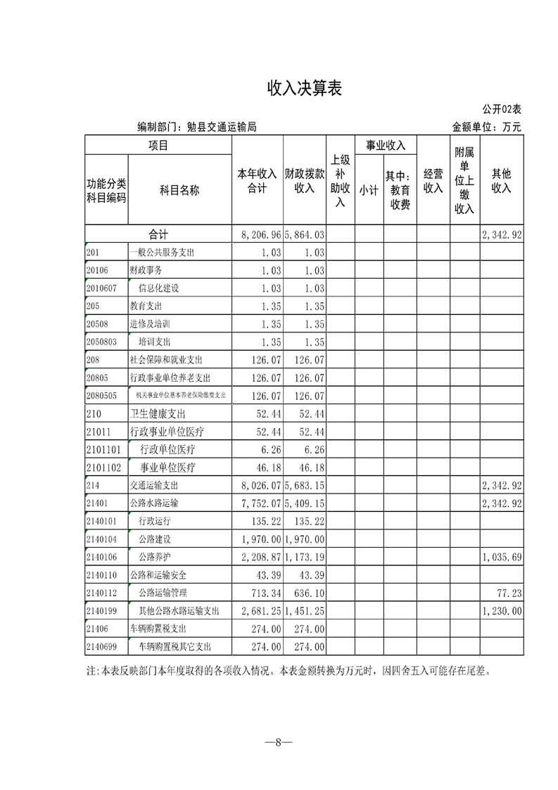 勉县交通运输局2021年勉县部门决算公开