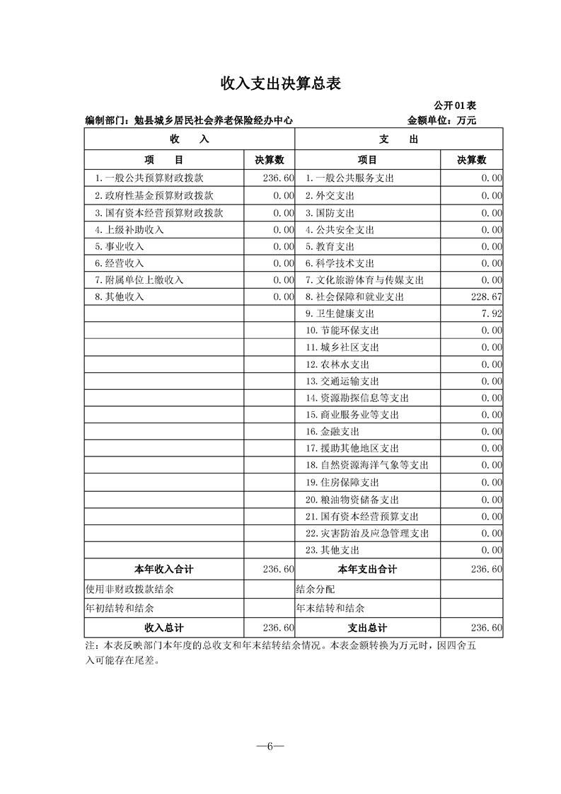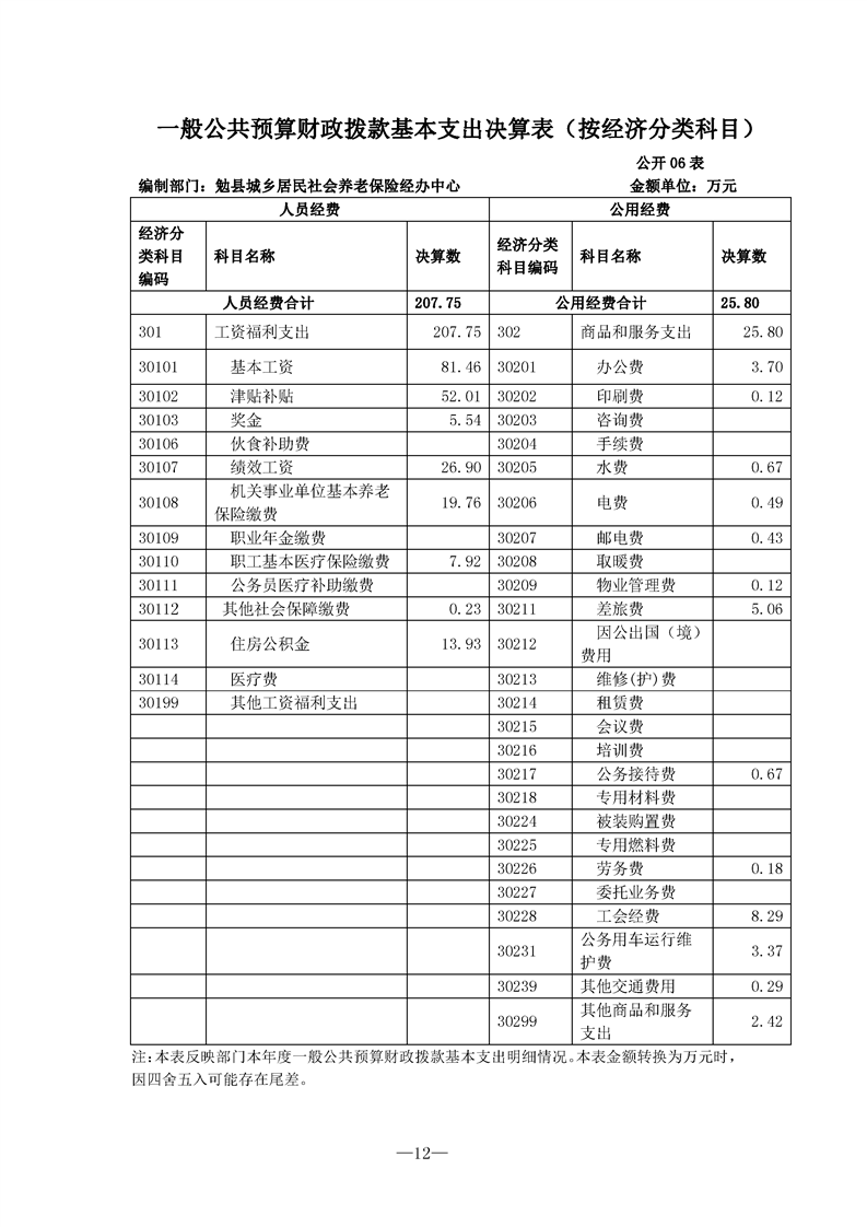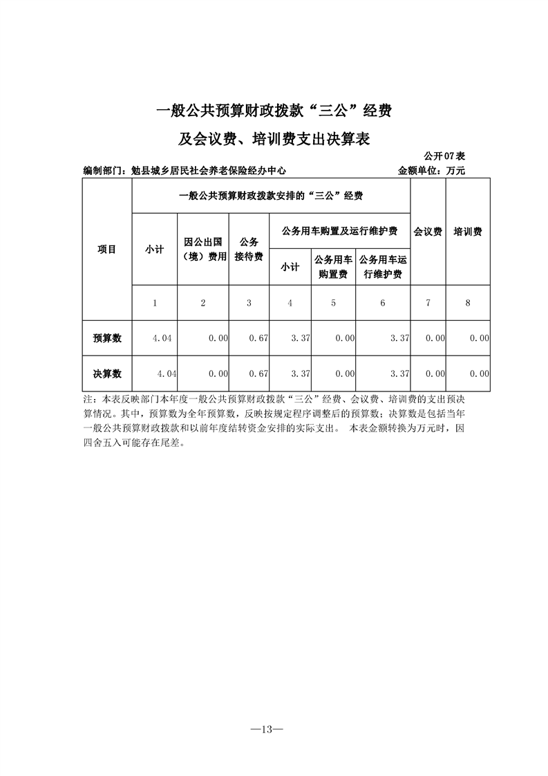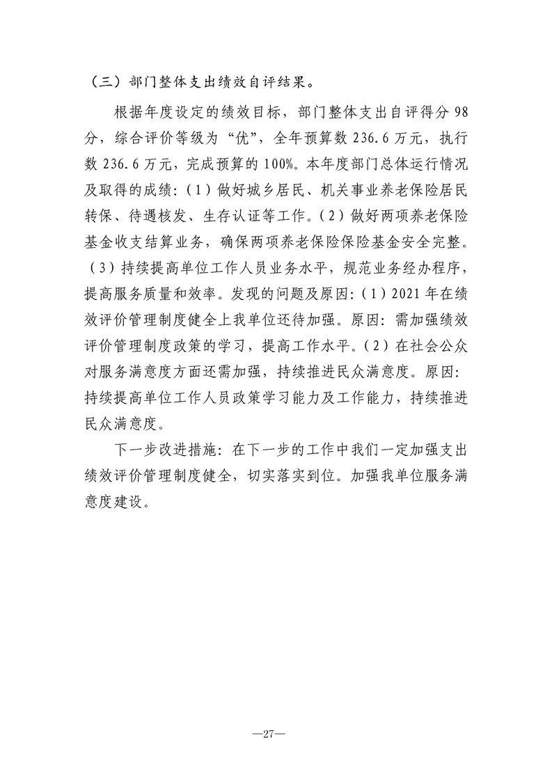 勉县城乡居民社会养老保险经办中心2021年决算公开