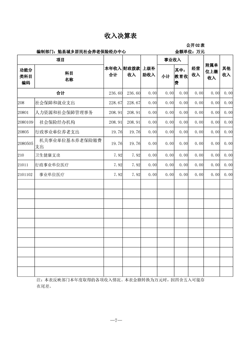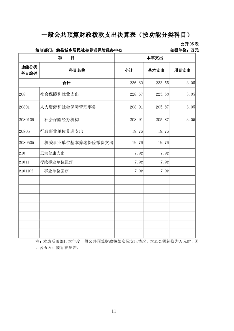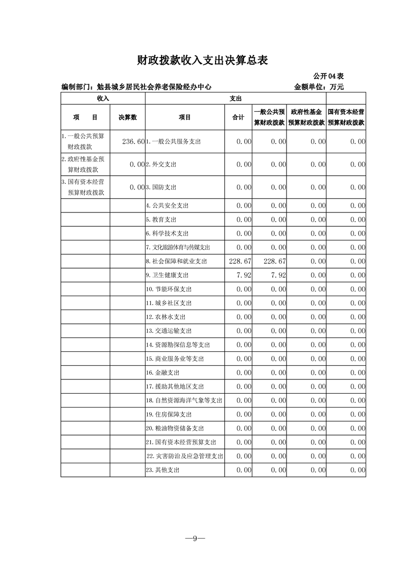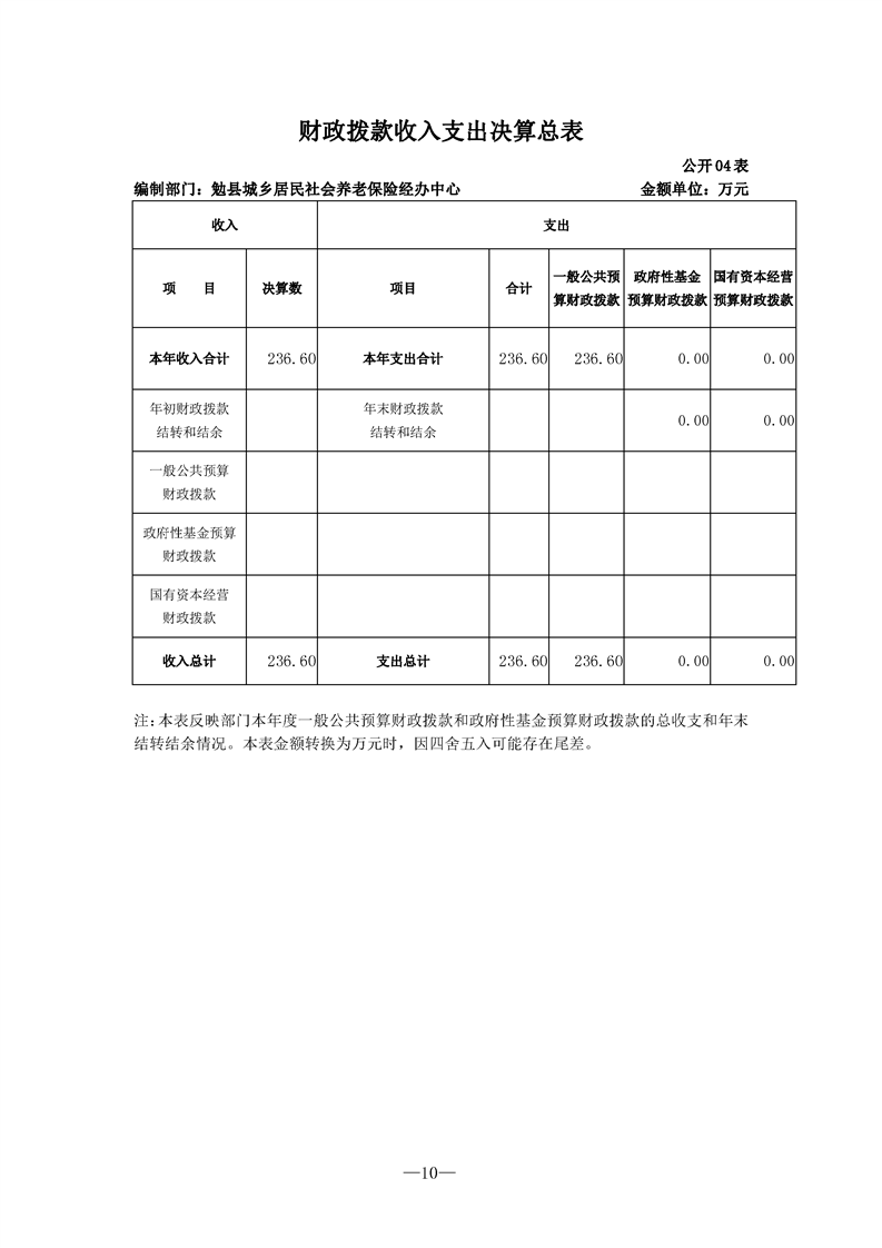 勉县城乡居民社会养老保险经办中心2021年决算公开