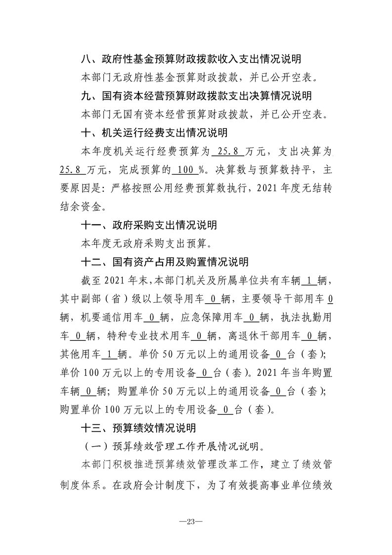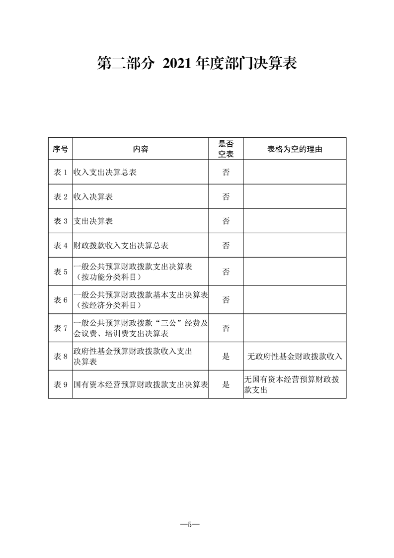 2021年县级部门决算公开目录