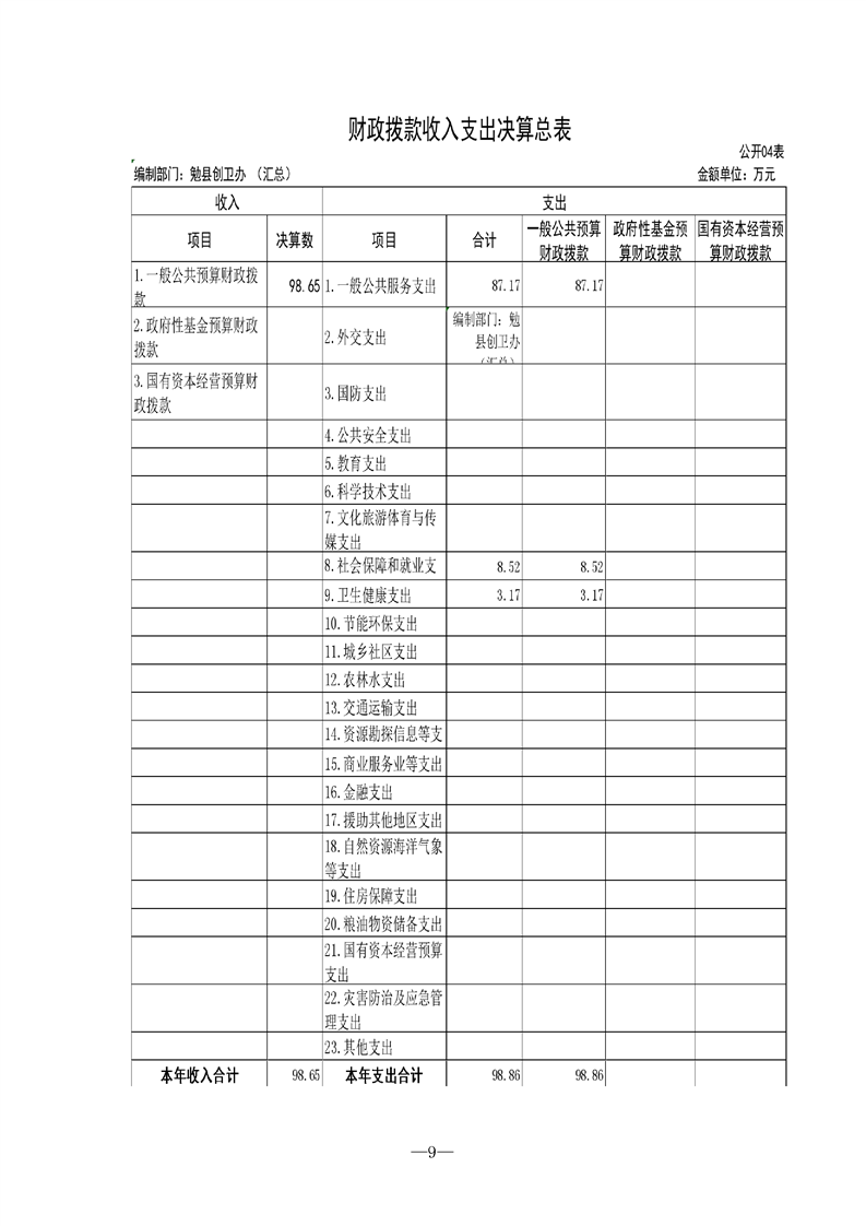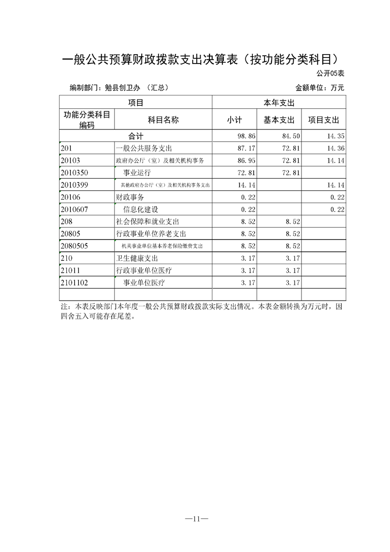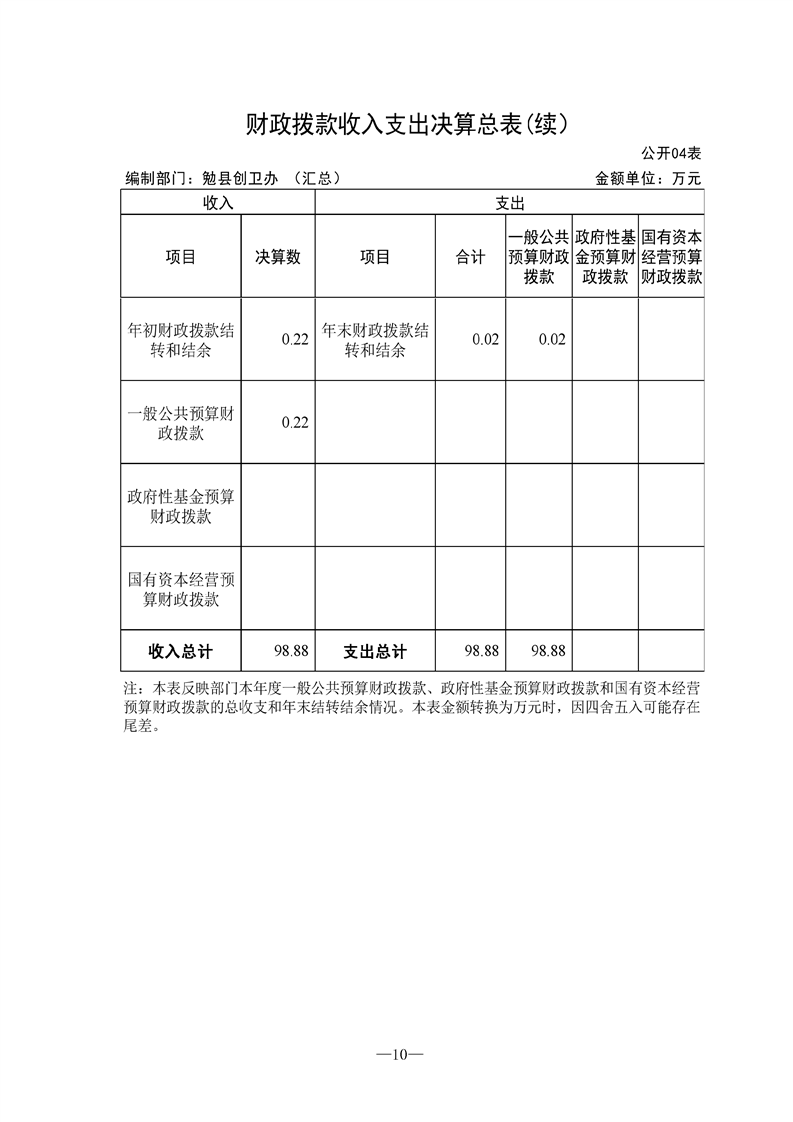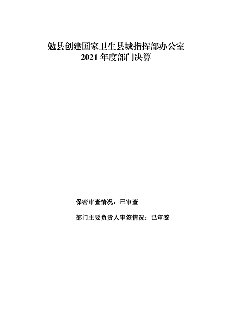勉县创建国家卫生县城指挥部办公室2021年部门决算公开(汇总)
