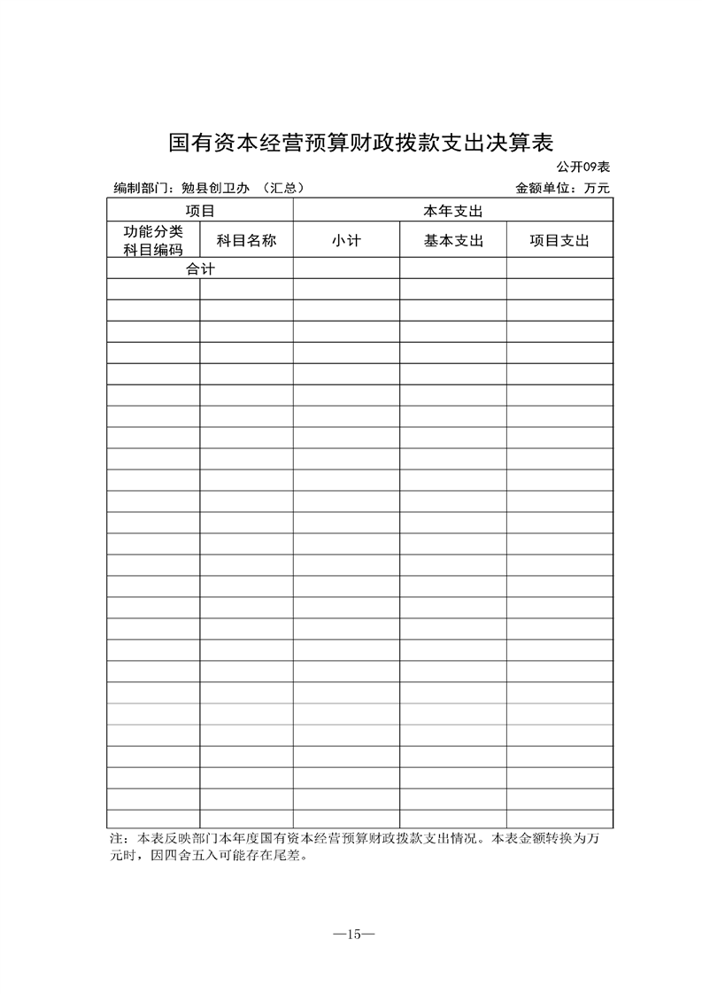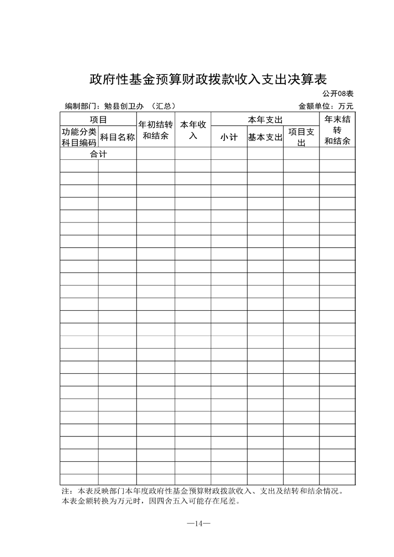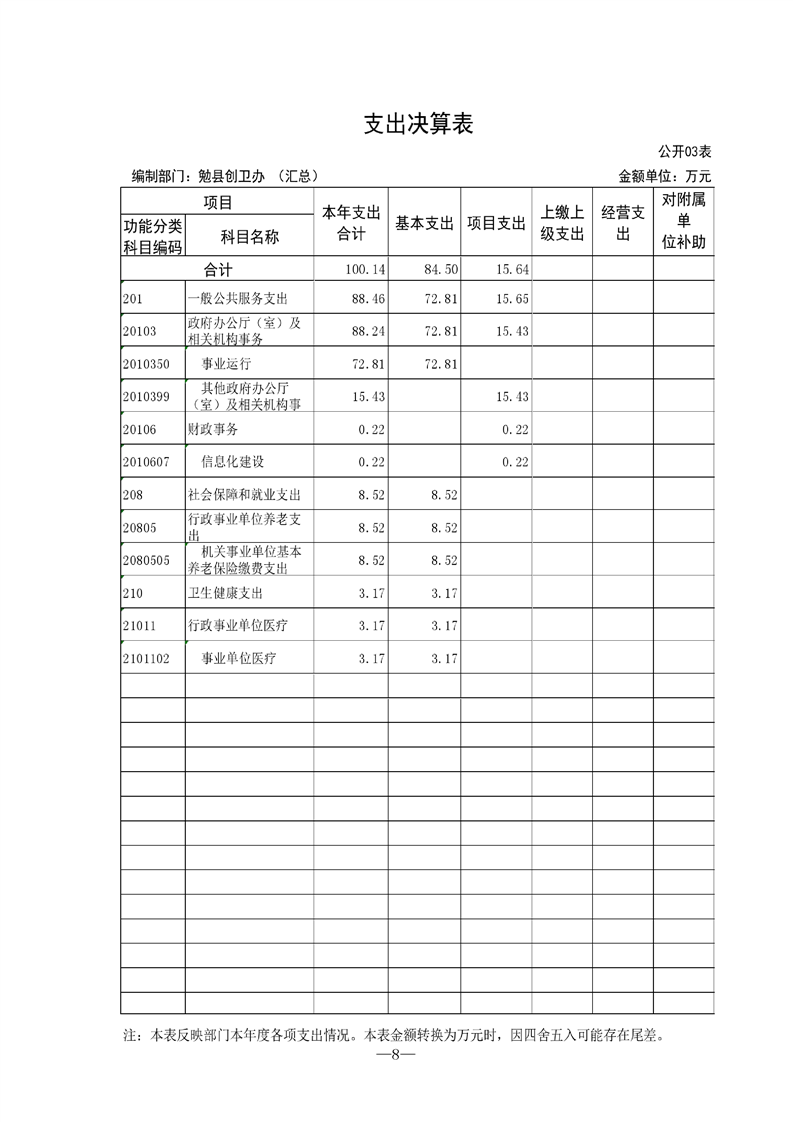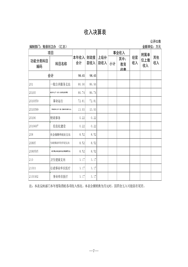 勉县创建国家卫生县城指挥部办公室2021年部门决算公开(汇总)
