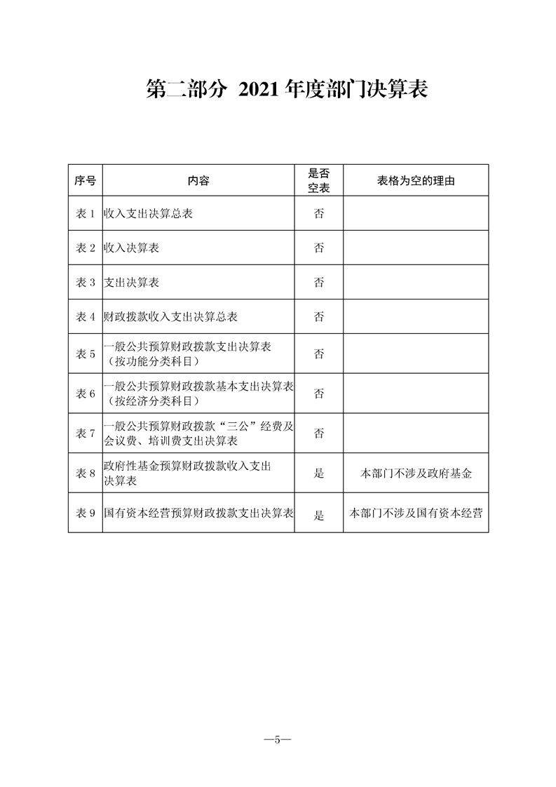 2021年县级部门决算公开目录