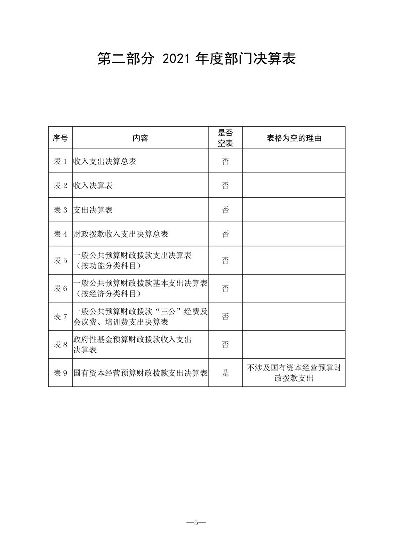 2021年县级部门决算公开目录