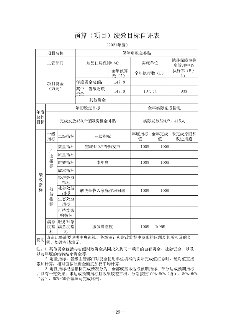 勉县住房保障中心2021年度部门决算公开