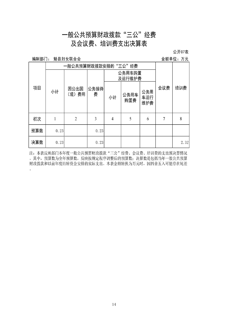 勉县妇女联合会2021年度部门决算